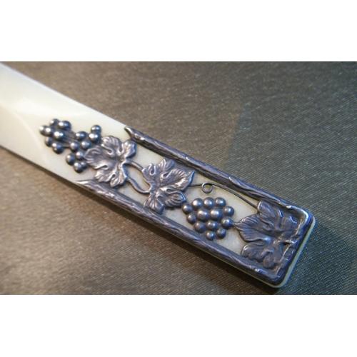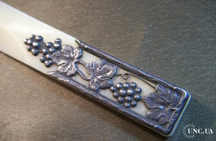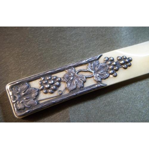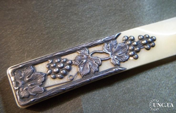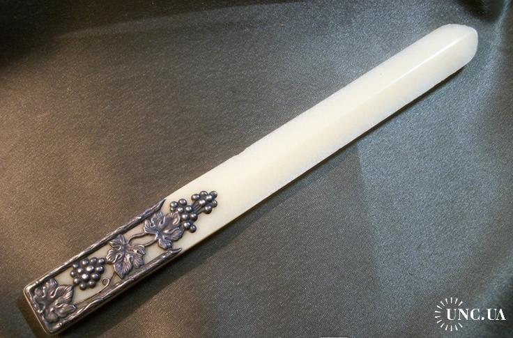 1961-19801Н56 Старый советский нож для бумаг, конвертов. Серебро - 875 пр, кость. Ленинград.