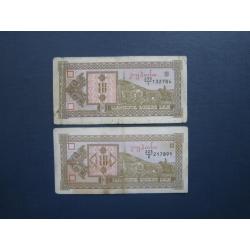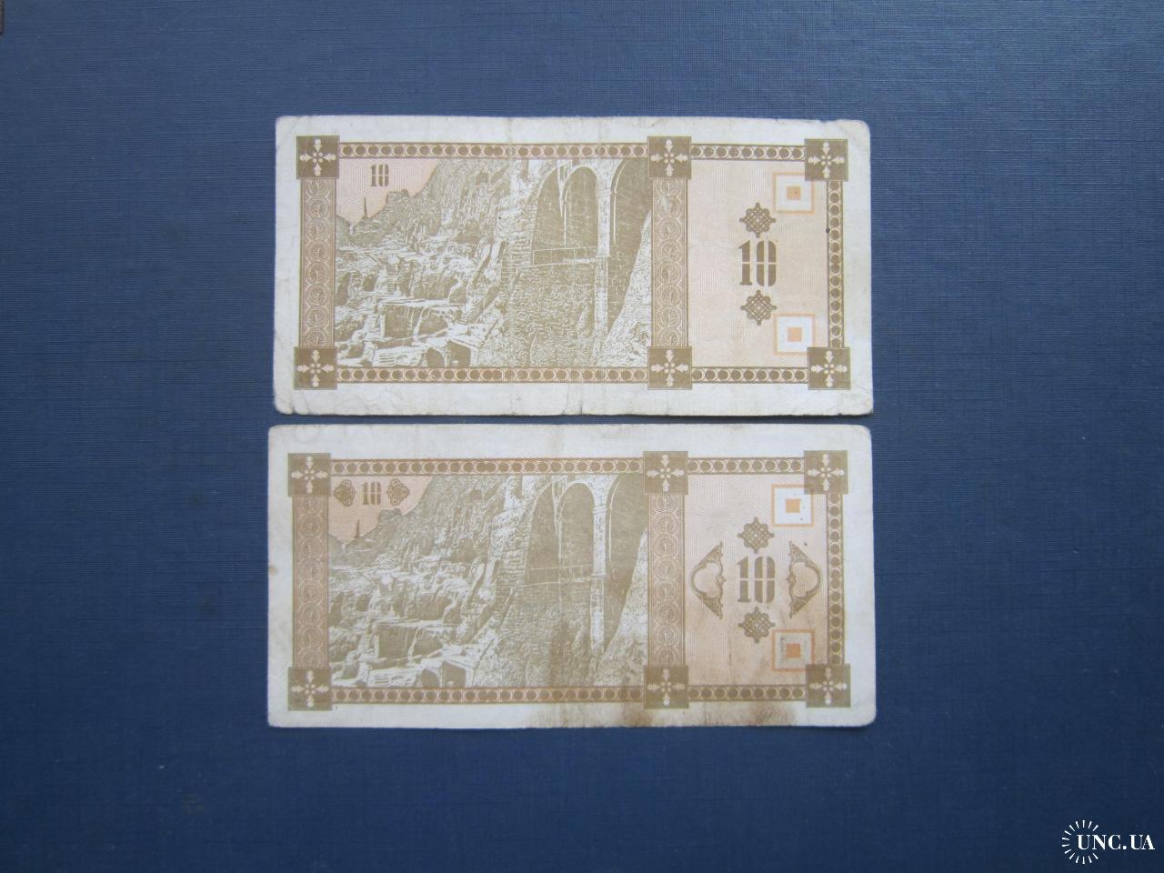 2 банкноти 10 лары (купонів) Грузія 1993 з обігу 1-й та 2-й випуски разом