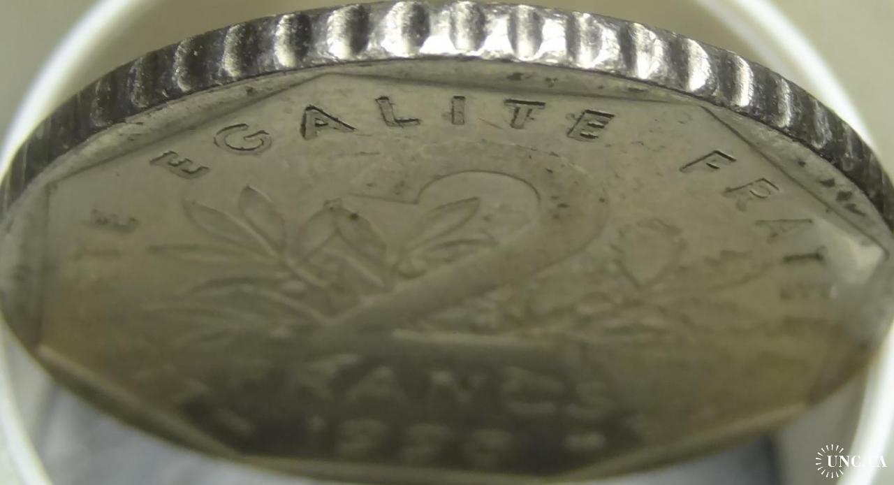 2 francs France 1998 reeded edge / 2 франка Франція 1998 рубчатий гурт