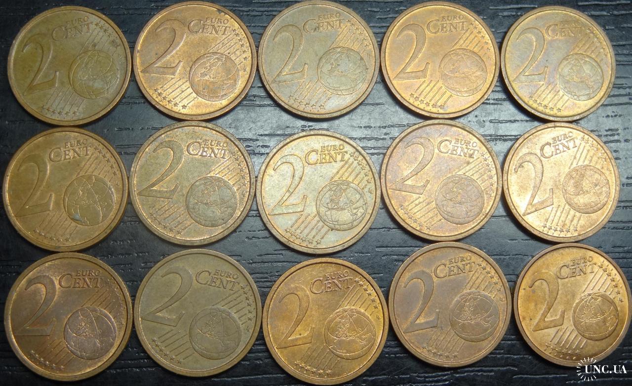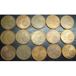 Set of 2 eurocent Italy, 15 pieces (all different by date) / порічниця 2 євроценти Італія, 15шт, всі різні