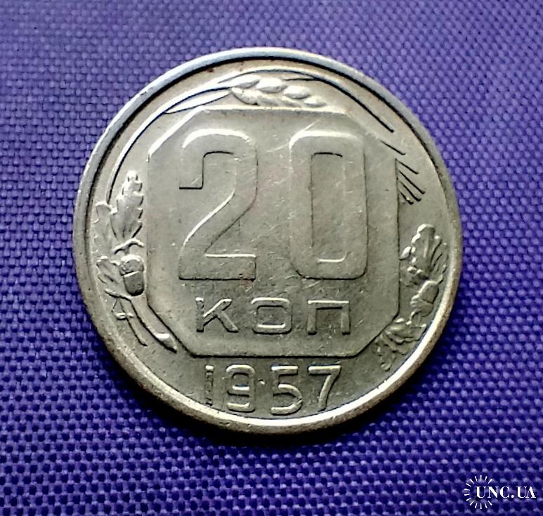 Original20 копійок 1957 року. Стан монети по світлинах, макроз'йомка.