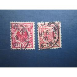2 марки Німеччина імперія 1889 стандарт 10 пф різний колір гаш