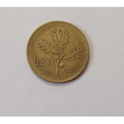 OriginalОбігова монета із алюмінієвої бронзи 20 лір 1957 року. Стан по фото