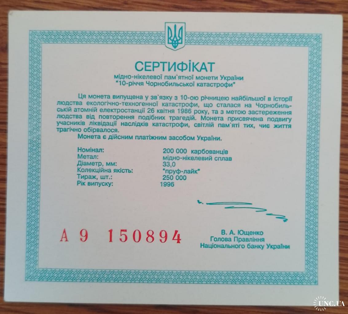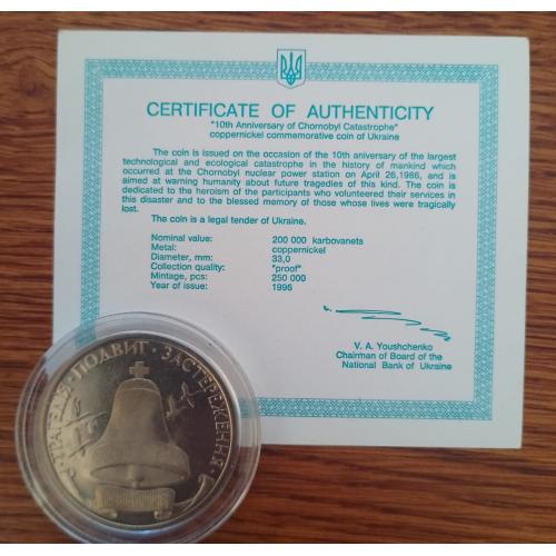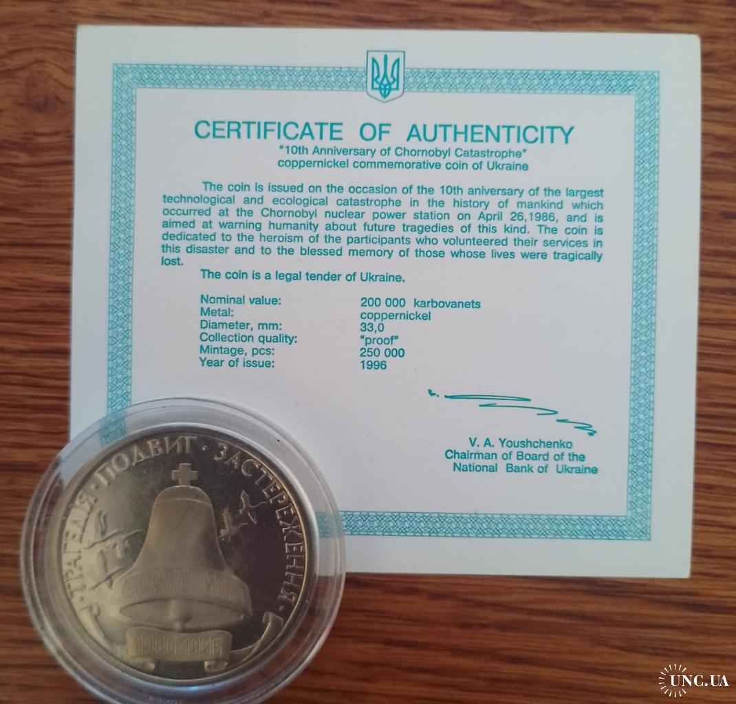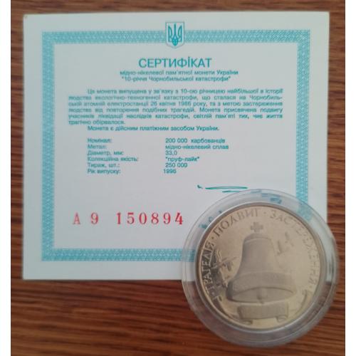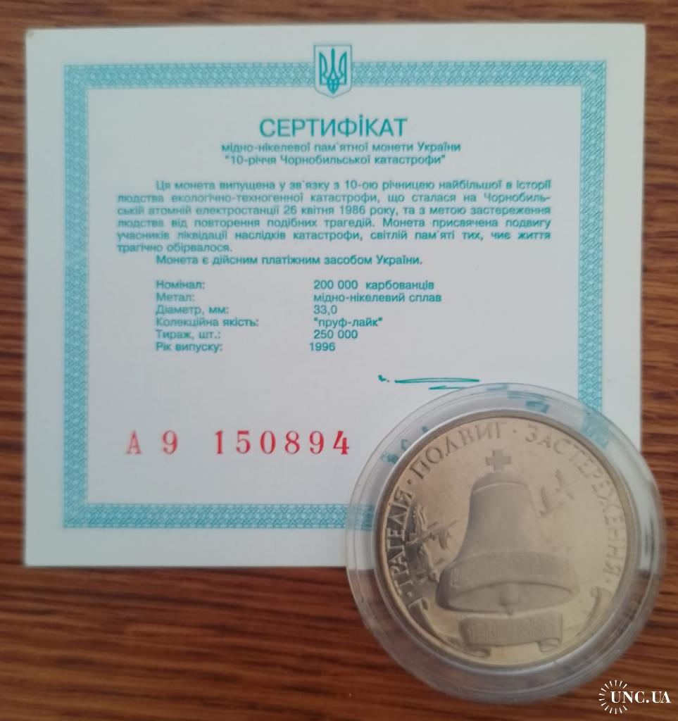 Original200000 карбованцев 1996 года посвящённые 10 годовщины аврии на ЧАЭС.