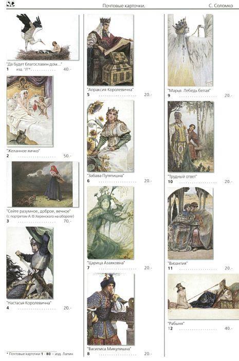 В каталог включены почтовые карточки, выполненные по рисункам С.С. Соломко – известного графика и акварелиста конца XIX – начала XX вв.