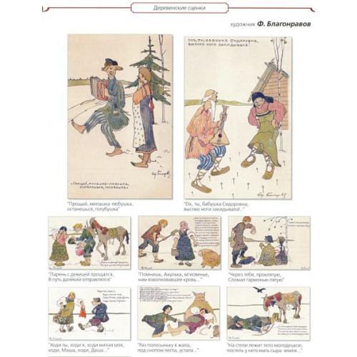 Настоящими книгами публикуются полные сборники почтовых карточек "Русские серии" на различные темы: иллюстрации к литературным произведениям, сказочные и исторические сценки, деревенский юмор, карикатуры, реклама, агитация и другое.