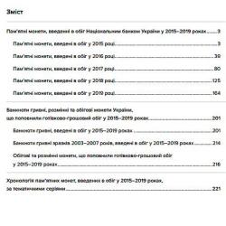 Информационно-справочный журнал содержит описание разменных, памятных и юбилейных монет, введенных в оборот Нацбанком Украины в 2015-19 гг.