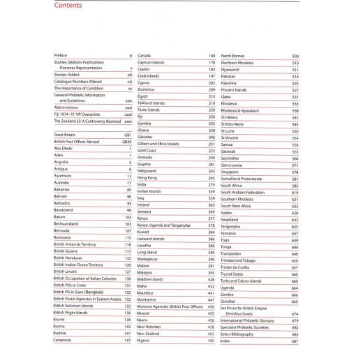 Общепризнанный каталог от Gibbons, содержит иллюстрации с высокой разрешающей способностью, детализированные с точными описаниями, цены на марки, которые отражают текущие тенденции рынка и всемирноизвестная нумерация каталога Gibbons.