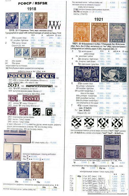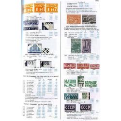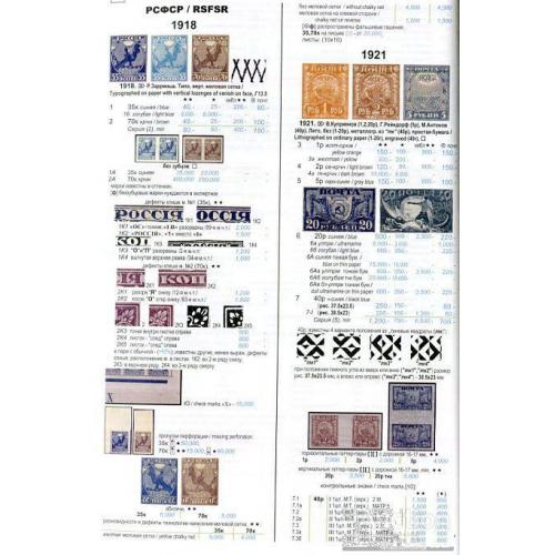 Почтовые марки РСФСР и СССР даются с разновидностями по водяным знакам, зубцовке, включая пропуски перфорации, бумаге, растрам, деталям рисунка и надпечаток. Подробно классифицированы повторные выпуски почтовых марок СССР 1946-1954 гг. по растрам, бумаге и отличиям в деталях рисунка. Приведены сведения о тиражах и расположении марок в листах.