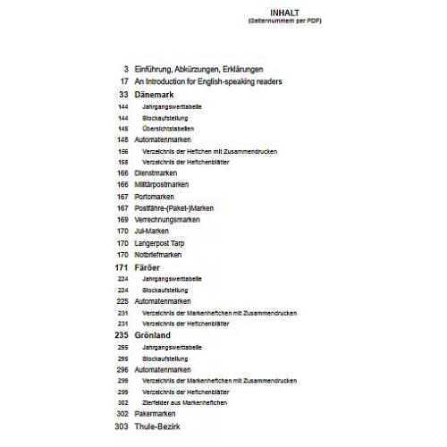 Язык: немецкий – с введением для англоязычных читателей. Это неофициальная компиляция части «Dänemark» (включая «Färöer» и «Grönland») из каталога Michel Nordeuropa 2018/2019 и дополнения, сделаннoгo из новых выпусков марок из Мichel Rundschau до номера 3/2022. В каталоге представлены марки Дании - до января 2022 г., марки Фарерских островов - до марта 2021 г., марки Гренландии - до ноября 2021 г.