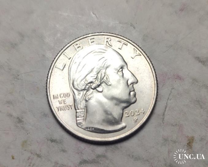 Монета на изображении — это квотер США 2024 года, посвященный Пэтси Такемото Минк в рамках программы «Американские женщины».