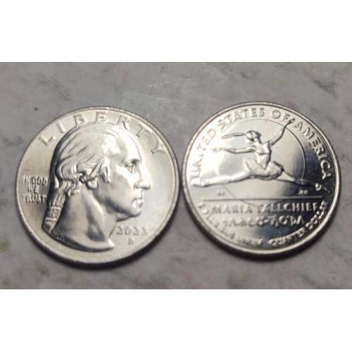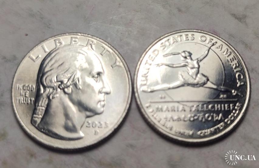 Это квотер США 2023 года с изображением Марии Таллчиф, выпущенный в рамках программы «Американские женщины».