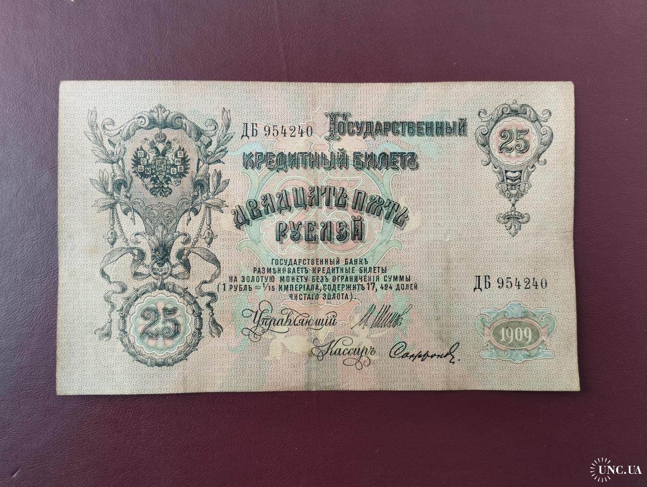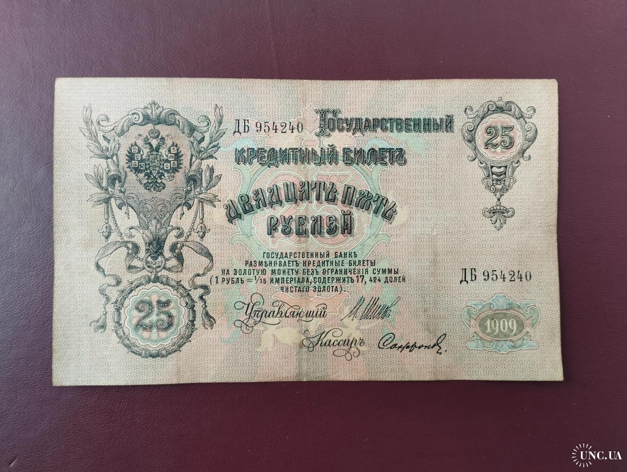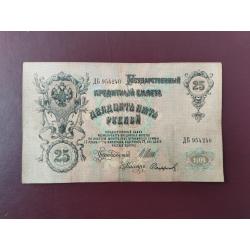 available25 рублей 1909 года, Шипов-Софронов, Серия ДБ (Царское правительство 1914-1917 г.), состояние по фото, хорошее