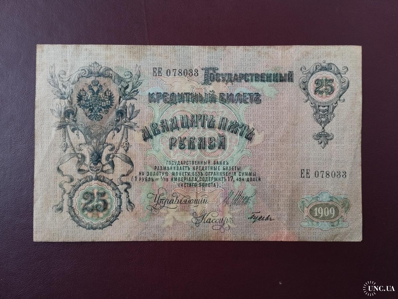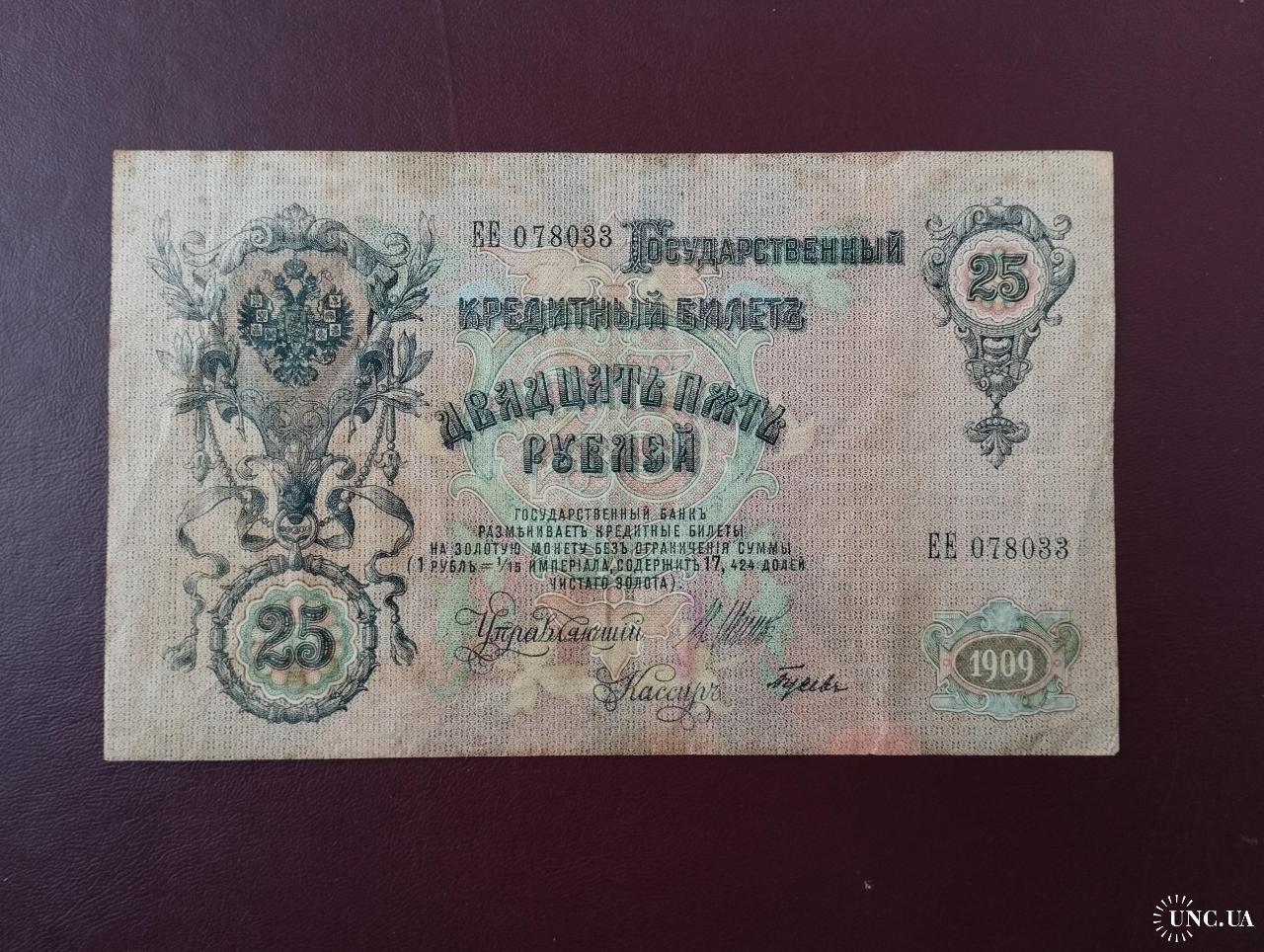 available25 рублей 1909 года, Шипов-Гусев (Правительство РСФСР 1917-1918 г.), состояние хорошее