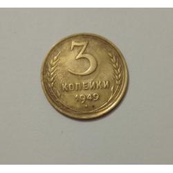 OriginalОбігова монета із алюмінієвої бронзи 3 копійки 1949 року. Стан по фото