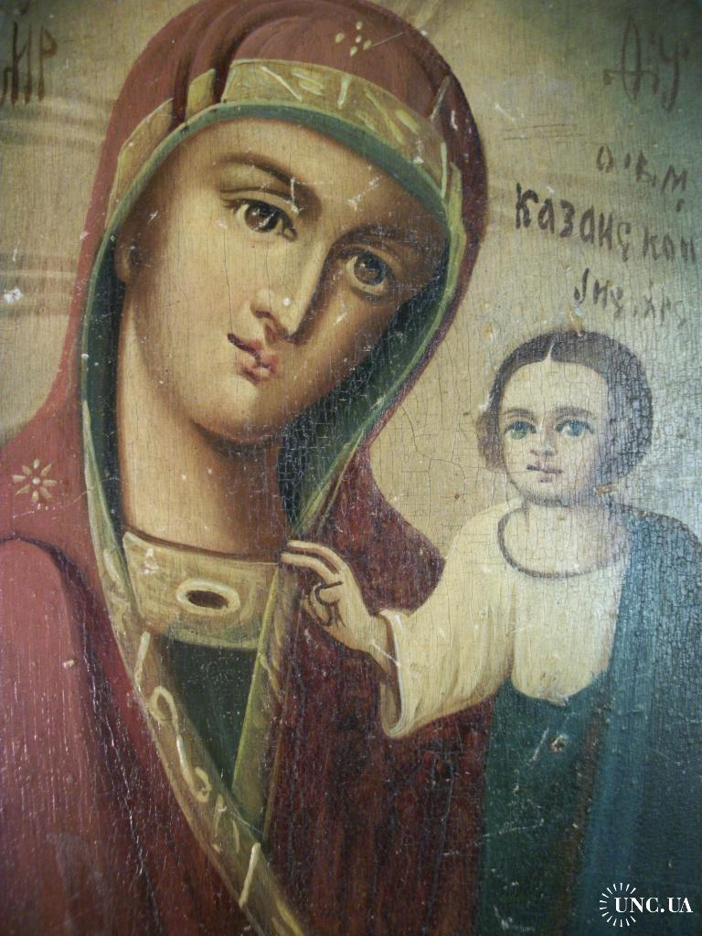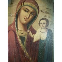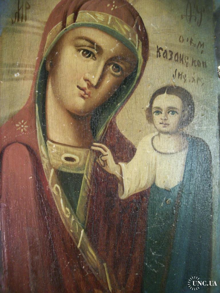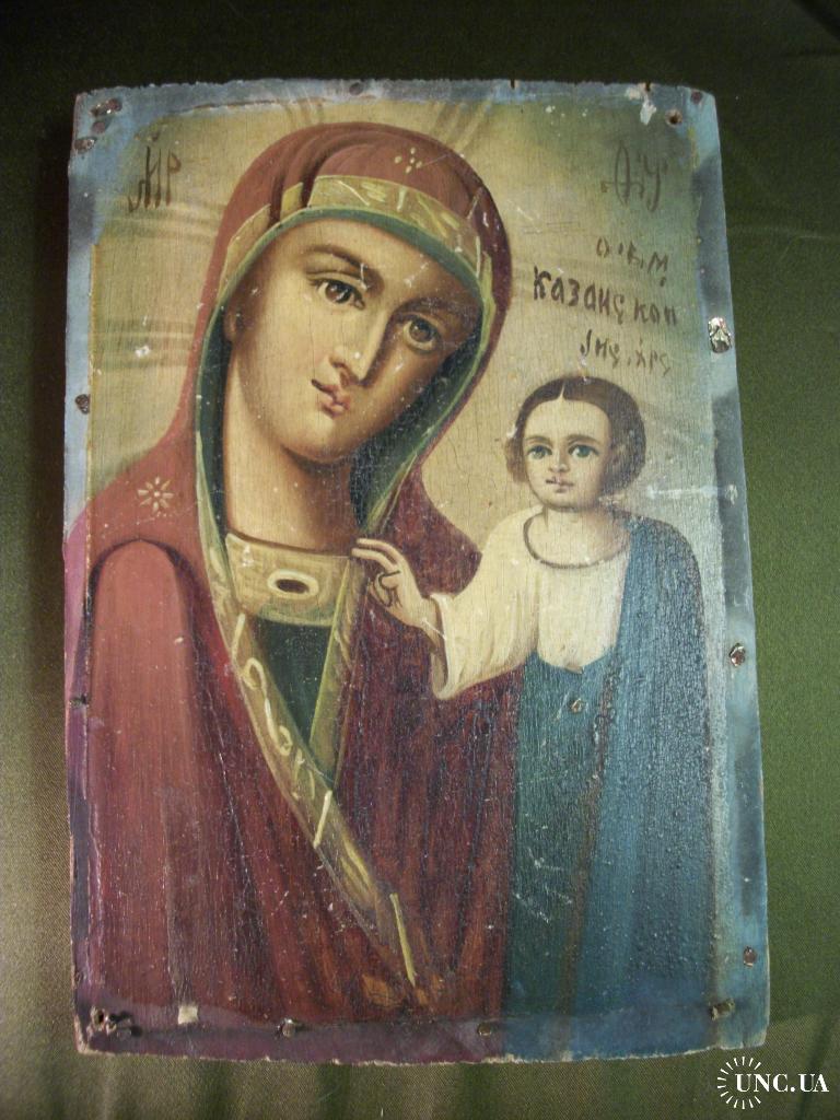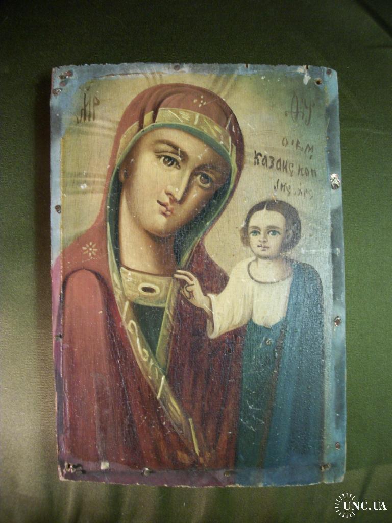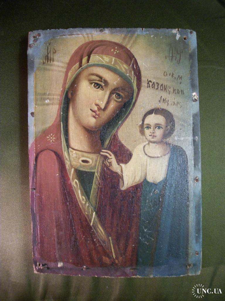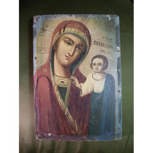 1941-19605.291 Икона Божья матерь Казанская. Масло, доска, дерево. Размер 12*17*1,3 см