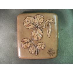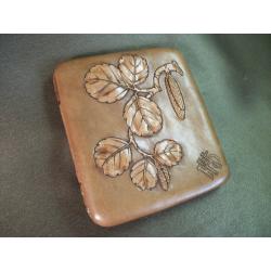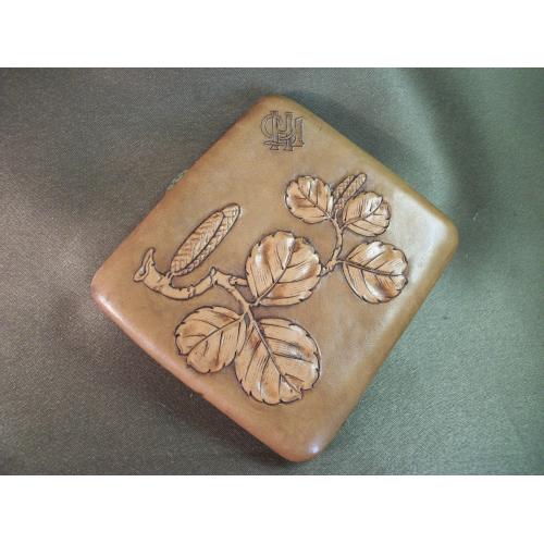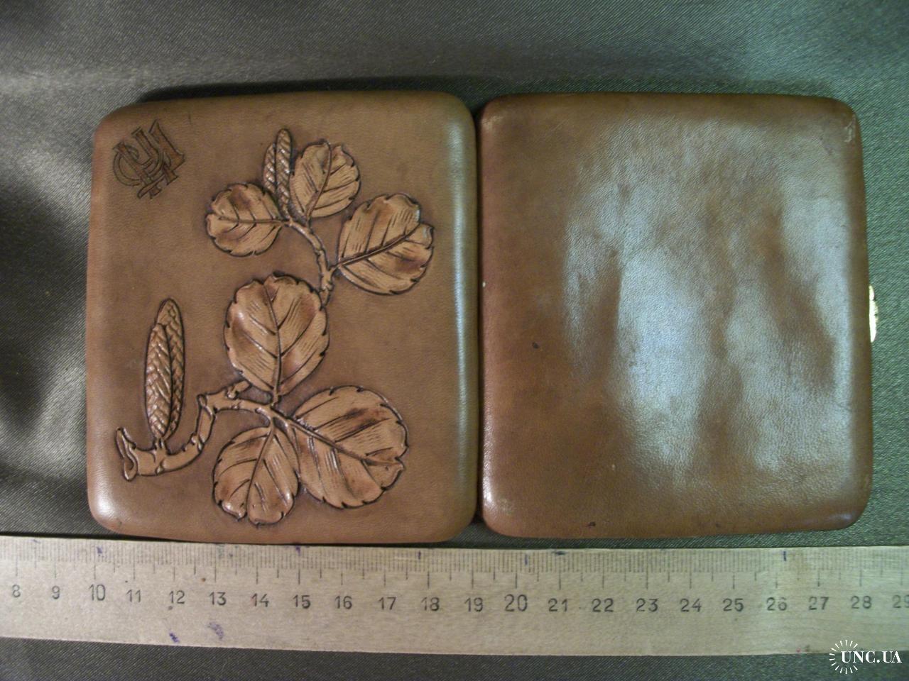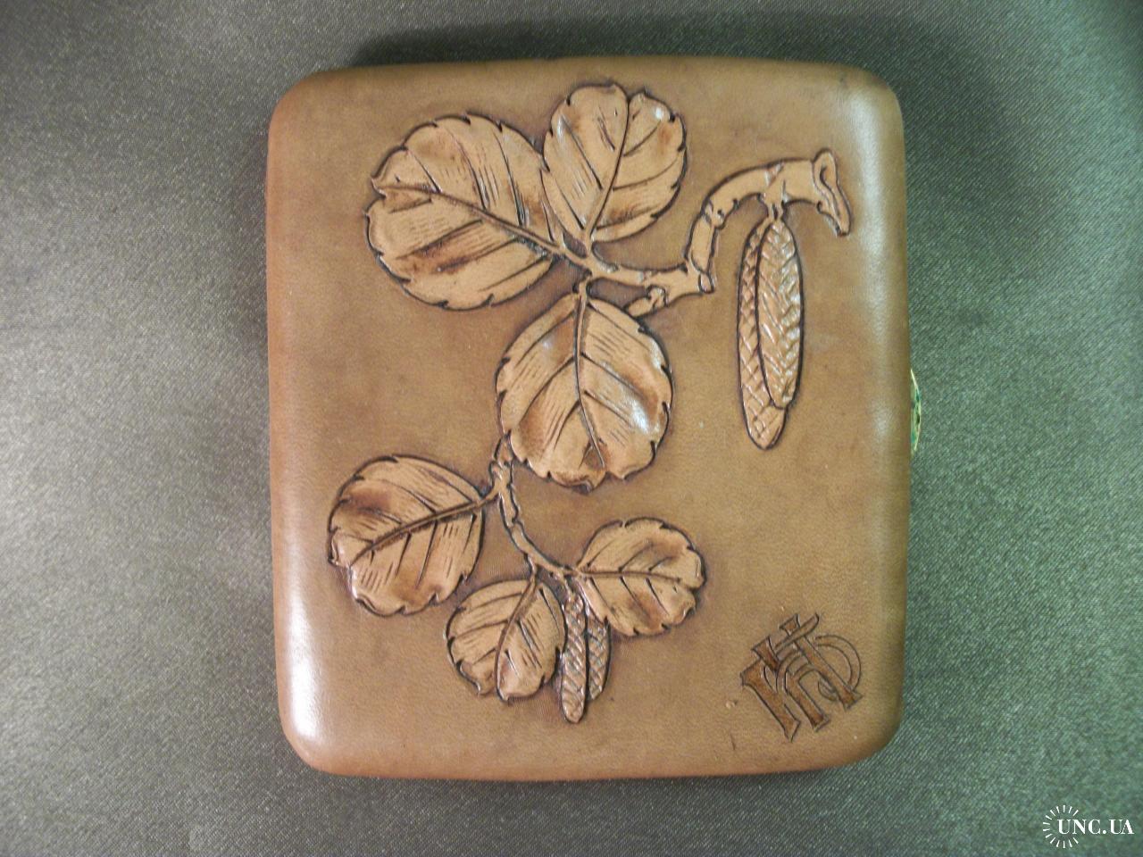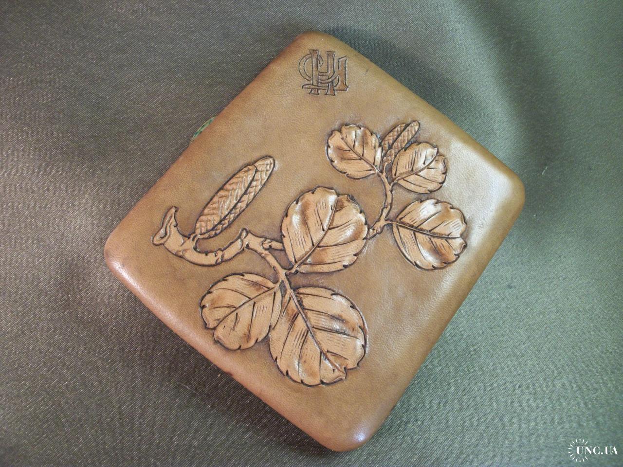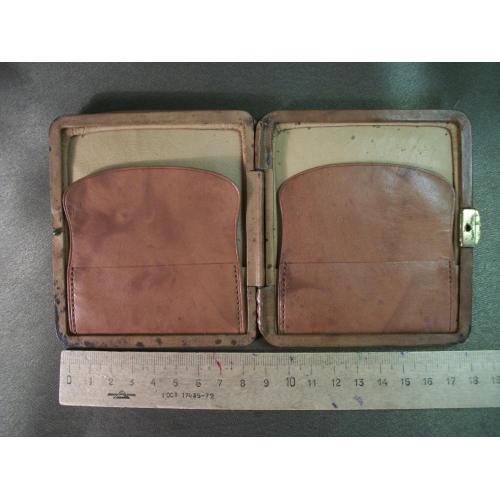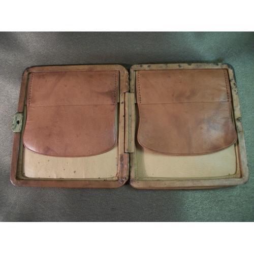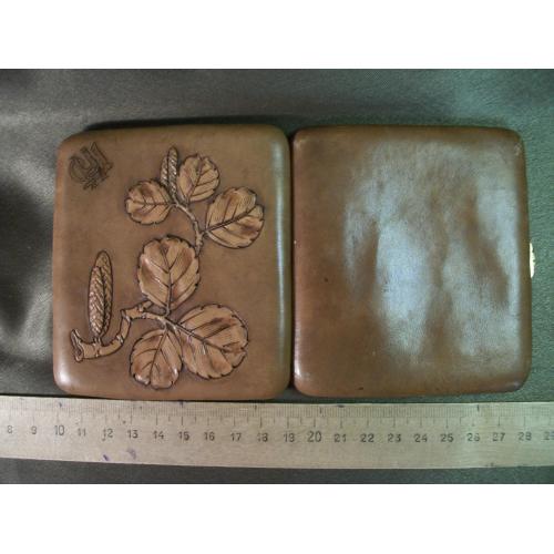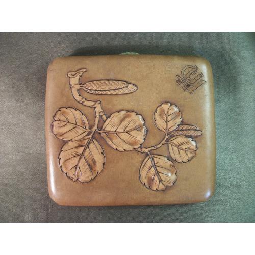 1961-19805.451 Изящный кожаный портсигар. Кожа, лайка. Монограмма БН. Модерн, винтаж. Первая половина 20-го века