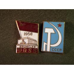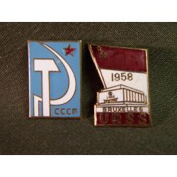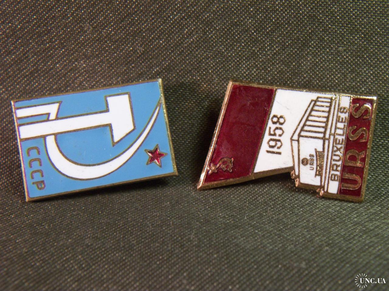 1941-19605.524 Знак. Выставка 1958 Брюссель, СССР и знак СССР серп и молот. 2 шт. Тяжелый металл