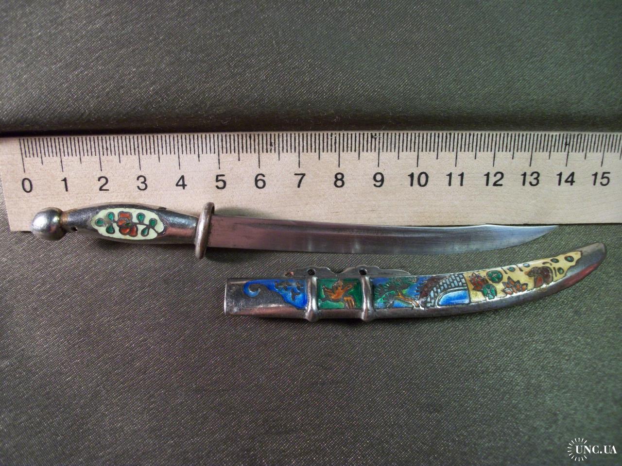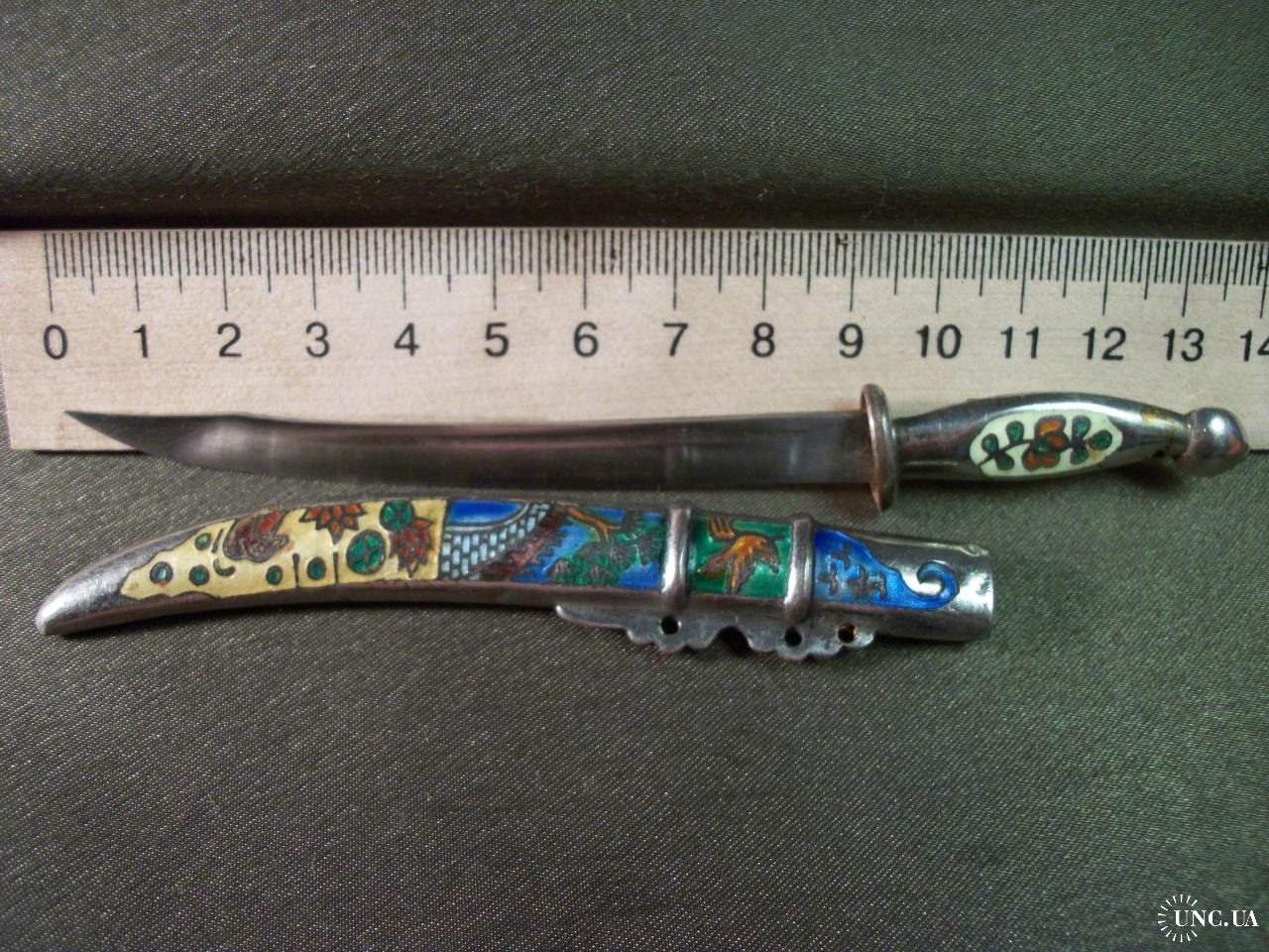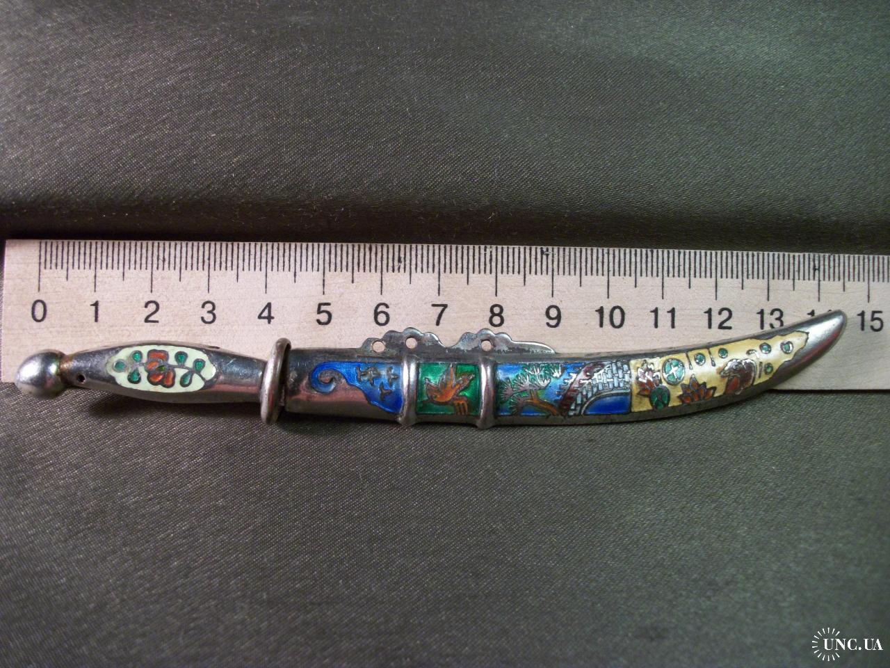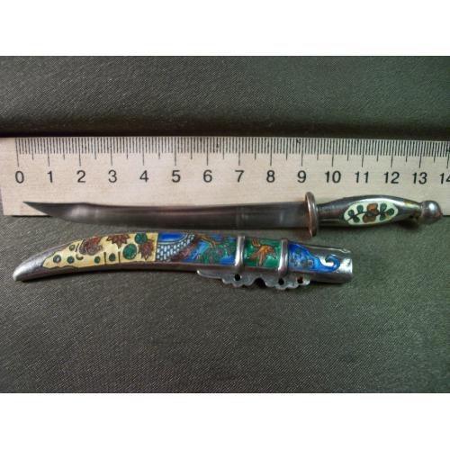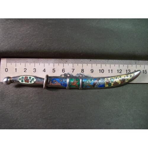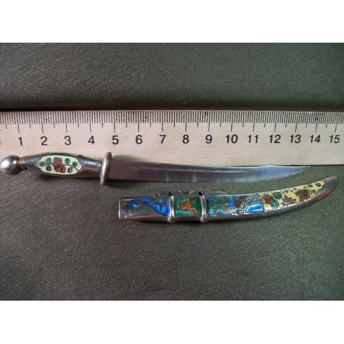 1981-20005.723 Нож для писем, бумаг, конвертов. Эмаль, клуазоне. Ножны из не магнитного металла, лезвие из железа.