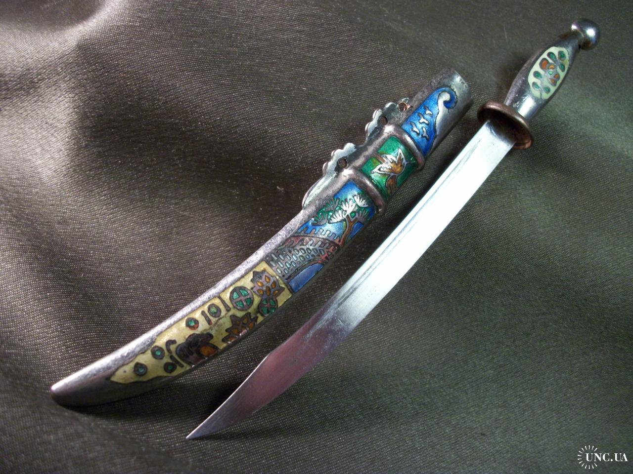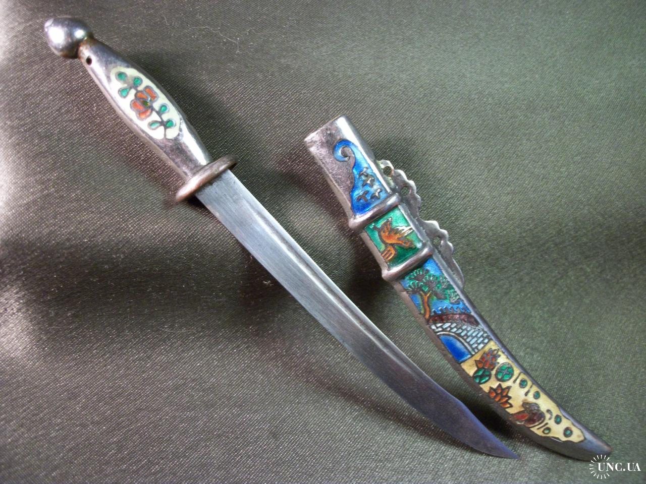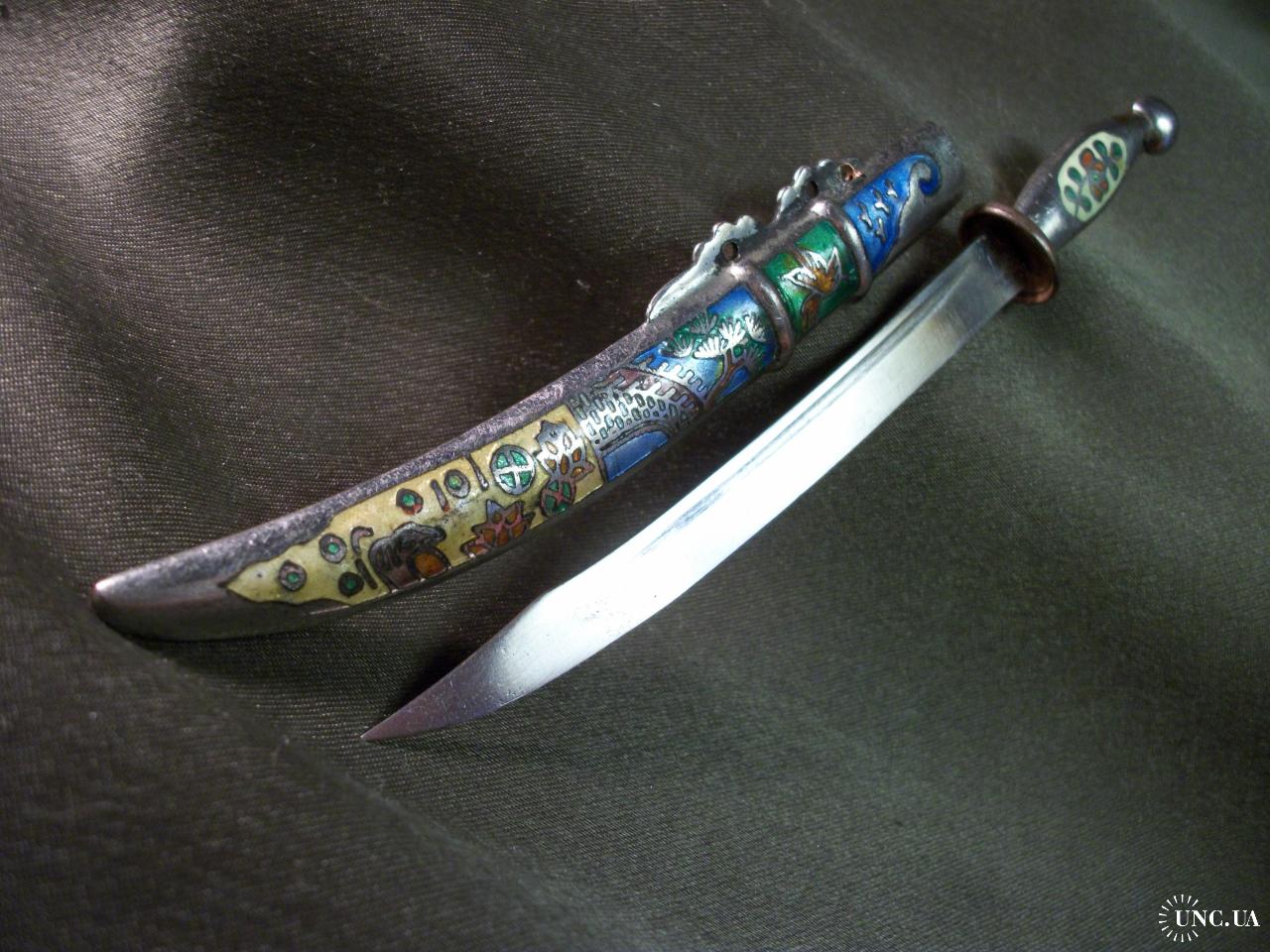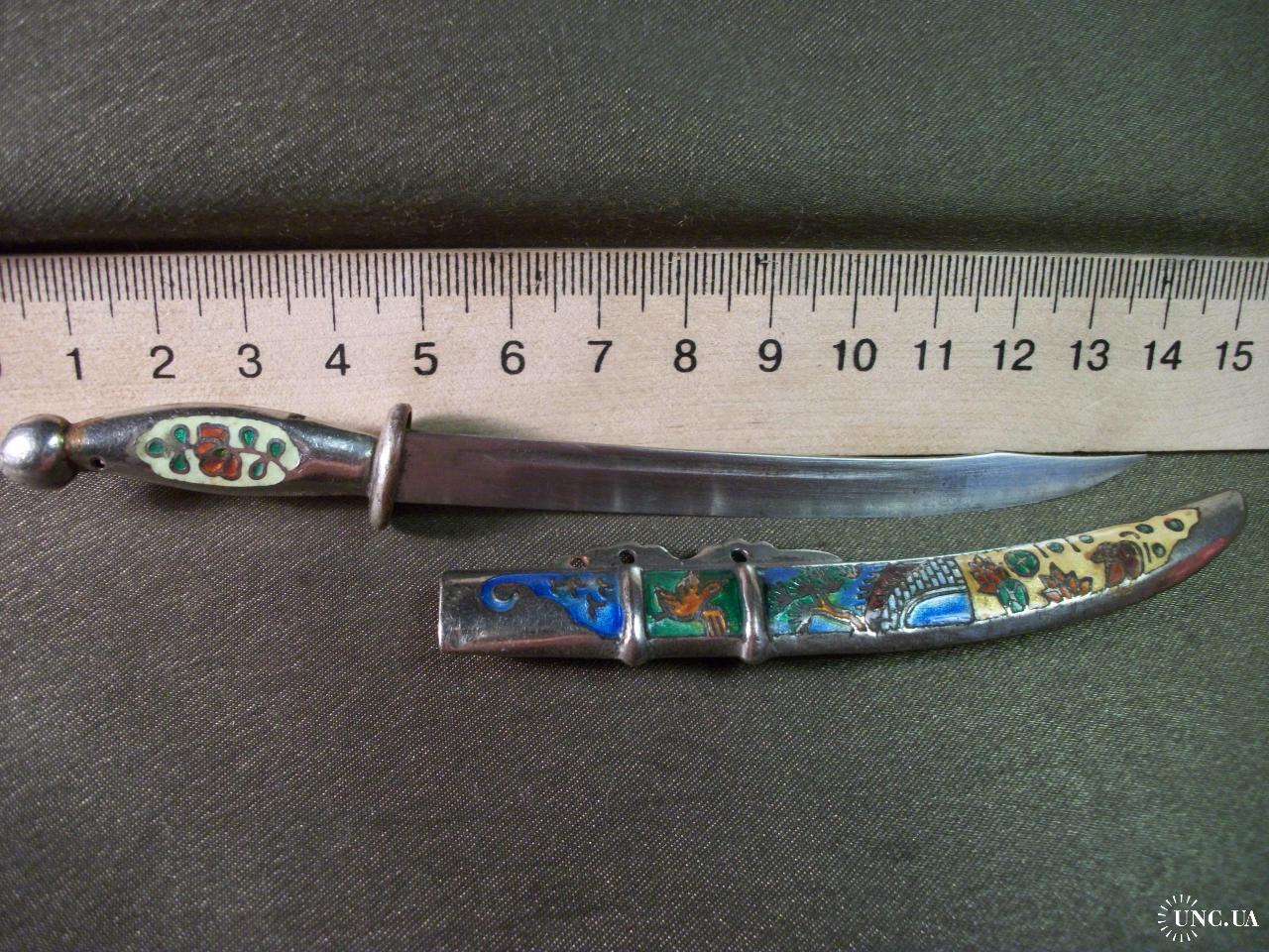 1981-20005.723 Нож для писем, бумаг, конвертов. Эмаль, клуазоне. Ножны из не магнитного металла, лезвие из железа.