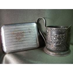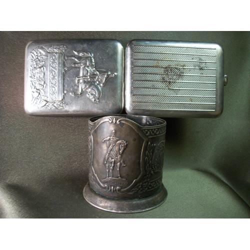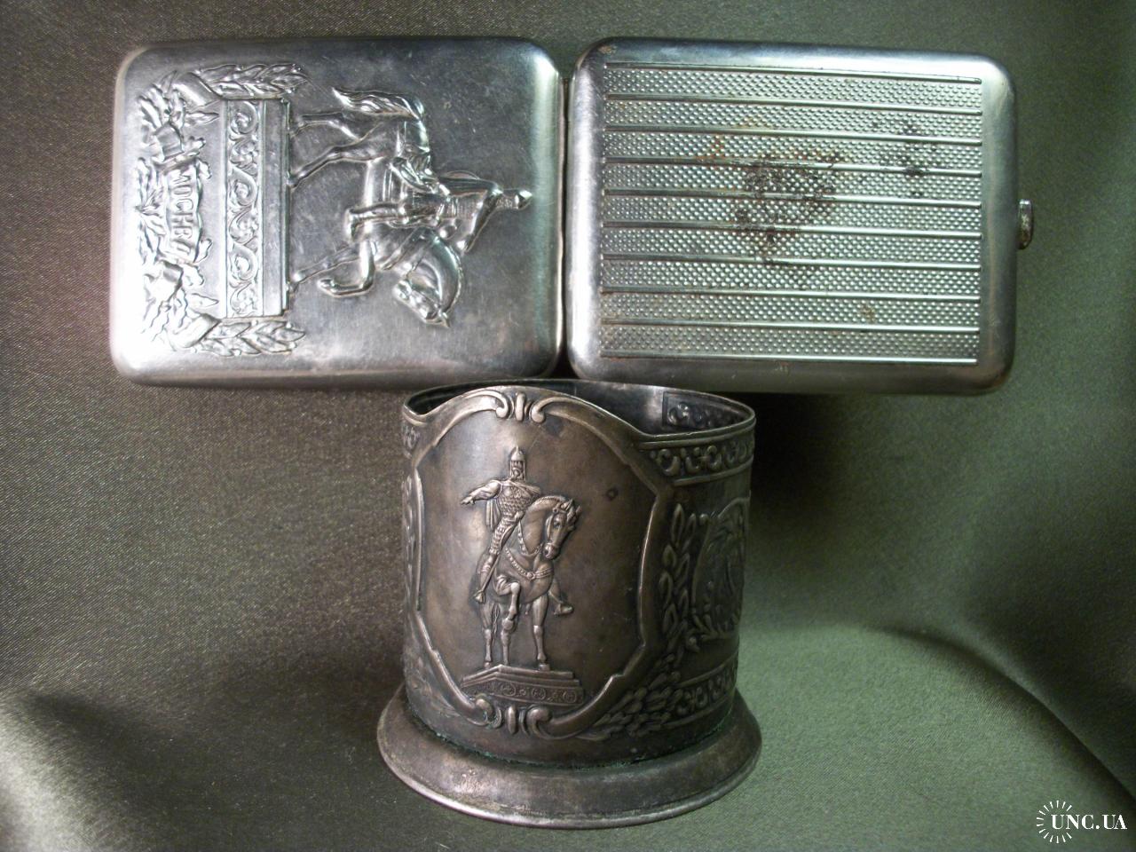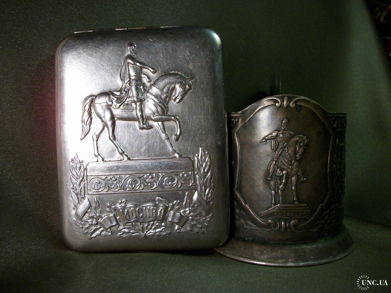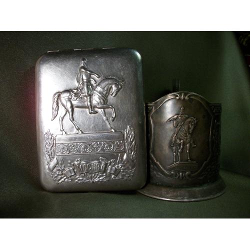 1961-19805.759 Мультилот, портсигар и подстаканник памятник Юрий Долгорукий, всадник на лошади, богатырь.