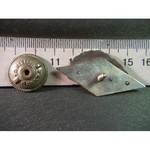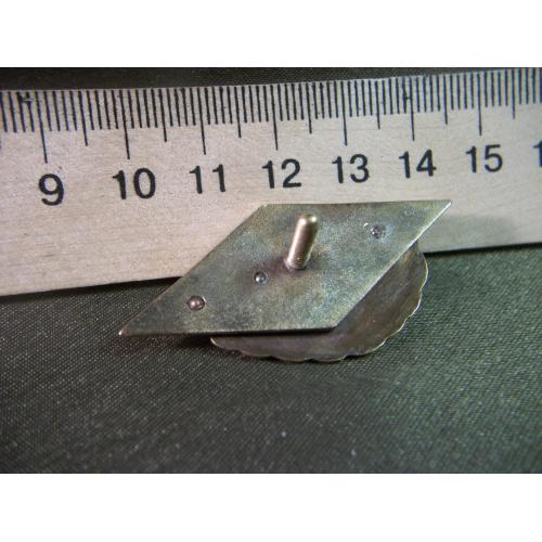 Скол в верхней части ромба на белой эмали, чешуйки на красной. Тяжелый металл