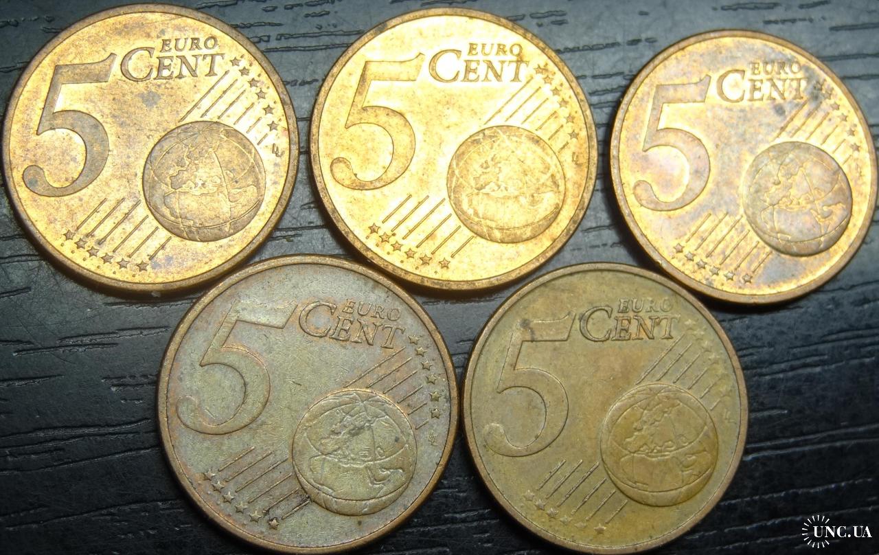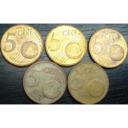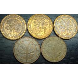 5 eurocent Germany 2013 (all 5 mint marks) / 5 євроцентів Німеччина 2013 (всі 5 монетні двори)