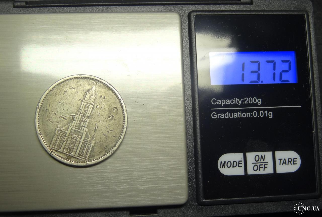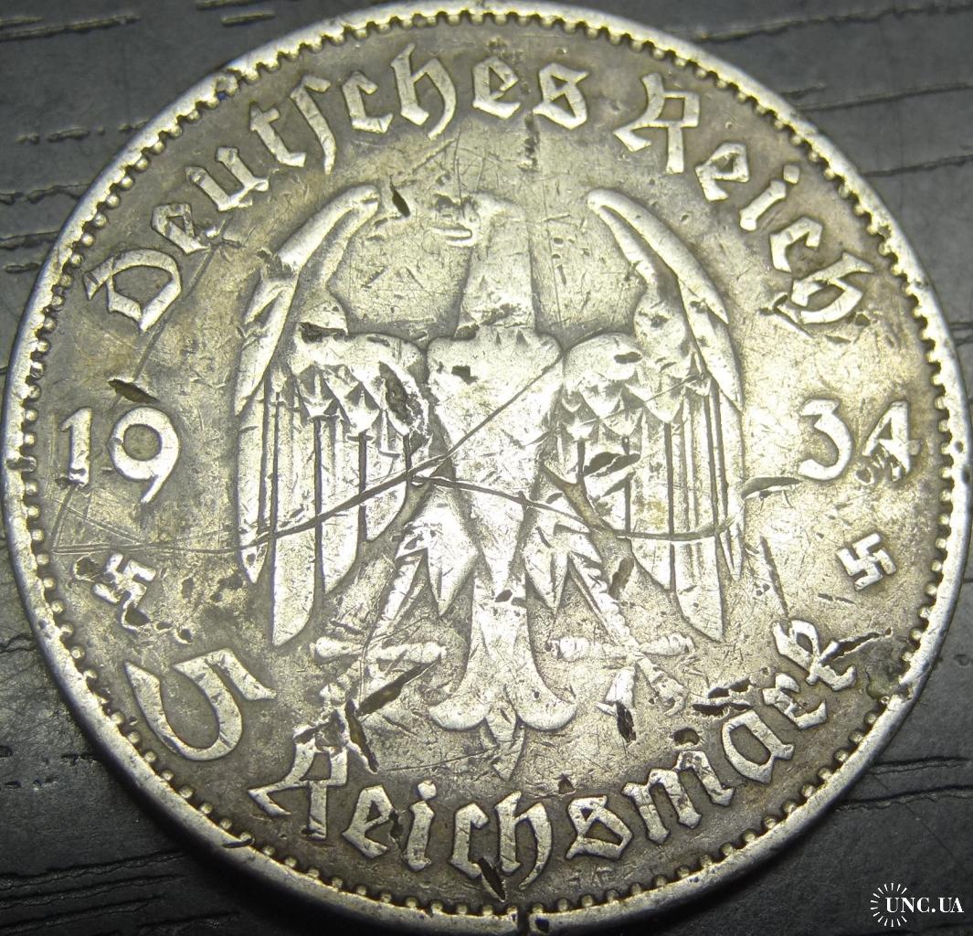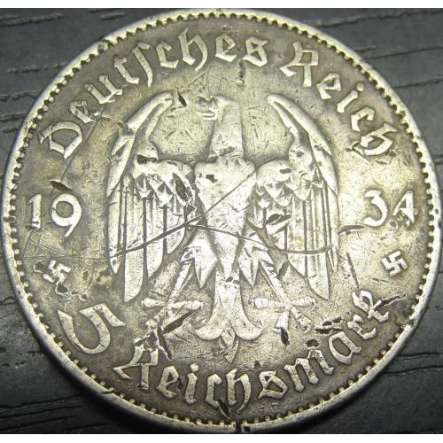 5 reichsmark Germany 1934 A Church (Berlin mint) / 5 рейхсмарок 1934 A Німеччина Кірха (монетний двір - Берлін), срібло