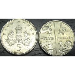 5 pence Great Britain 2008 (old and new design) / 5 пенсів Британія 2008 (два різновиди) старий і новий дизайн