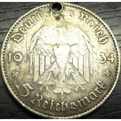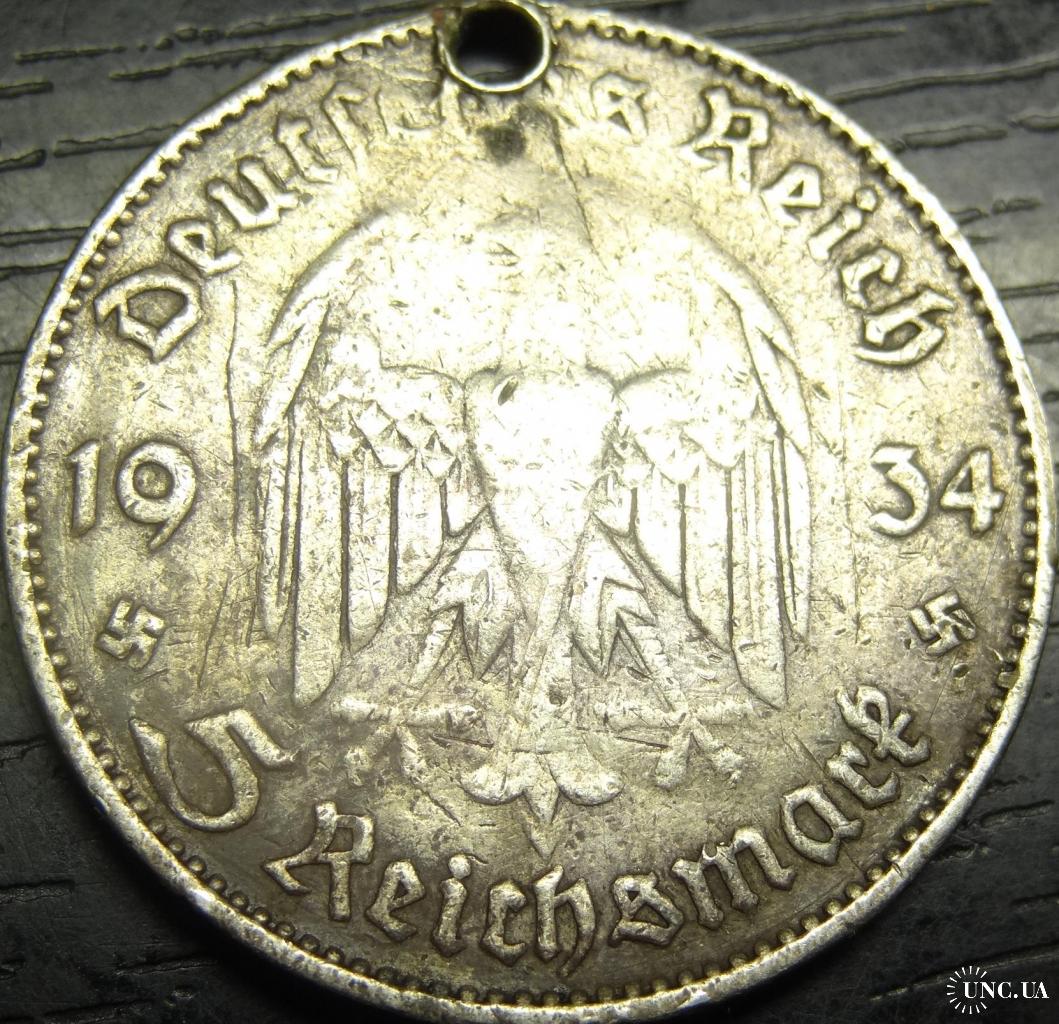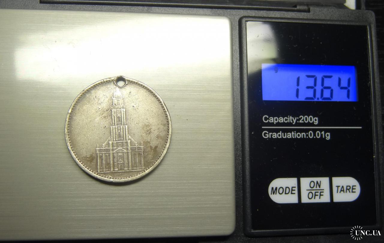 5 reichsmark Germany 1934 E Church (Muldenhütten mint) / 5 рейхсмарок 1934 E Німеччина Кірха (монетний двір - Мульденхюттен), срібло