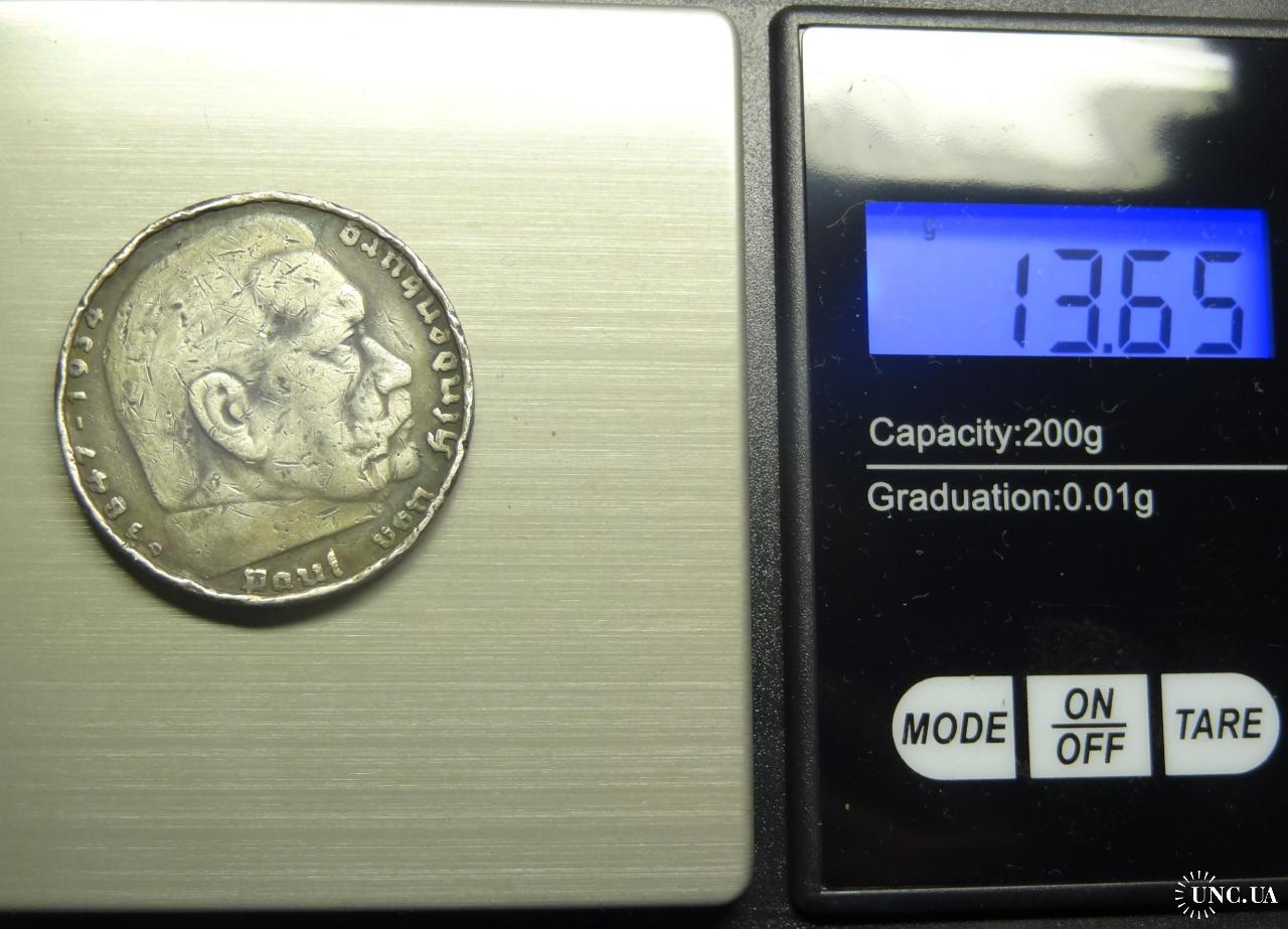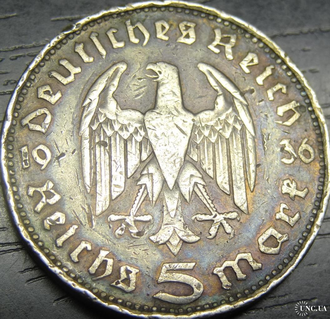 5 reichsmark Germany 1936 D (Munich mint) / 5 рейхсмарок 1936 D Німеччина (монетний двір - Мюнхен), срібло