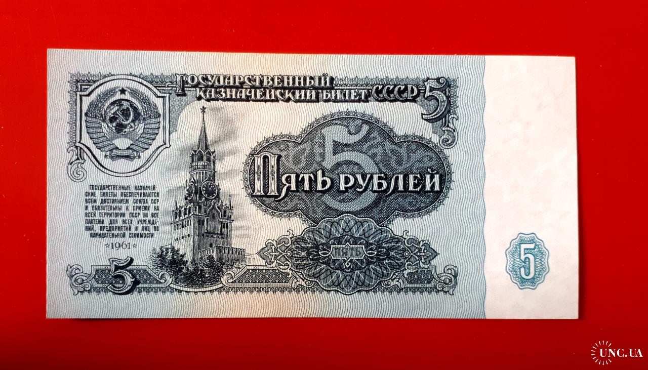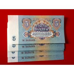 5 рублей 1961 года UNC номера серии пк от 3435570 по 3435578 по порядку из банковской упаковки!