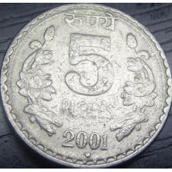 5 rupees India 2001 (Noida mint) / 5 рупій Індія 2001 (монетний двір Нойда)