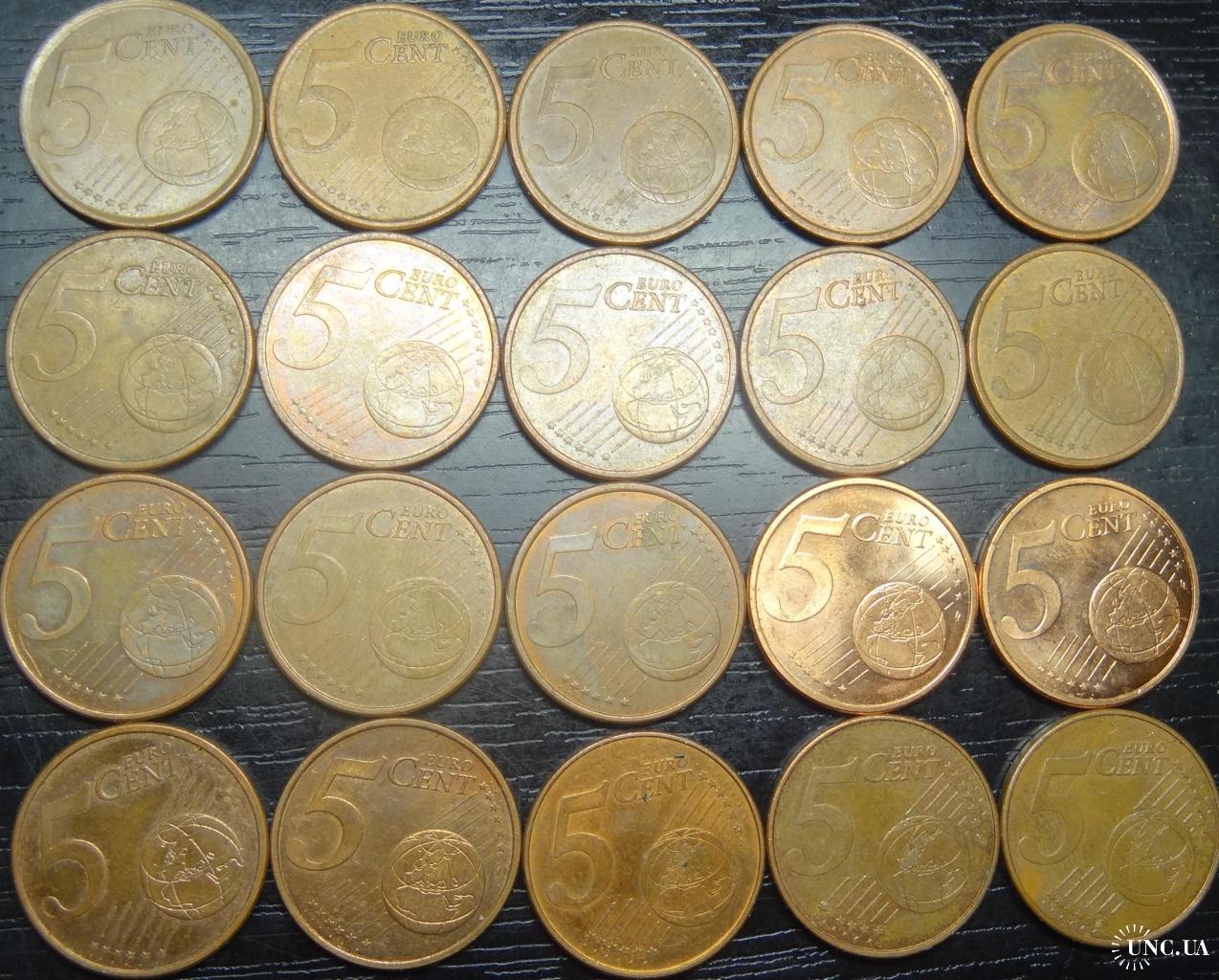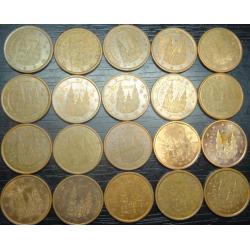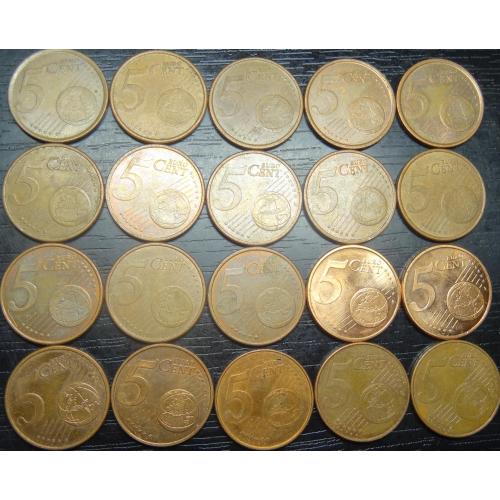 set of 5 eurocent Spain (all different by date) 20 pieces / порічниця 5 євроцентів Іспанія, 20шт, всі різні