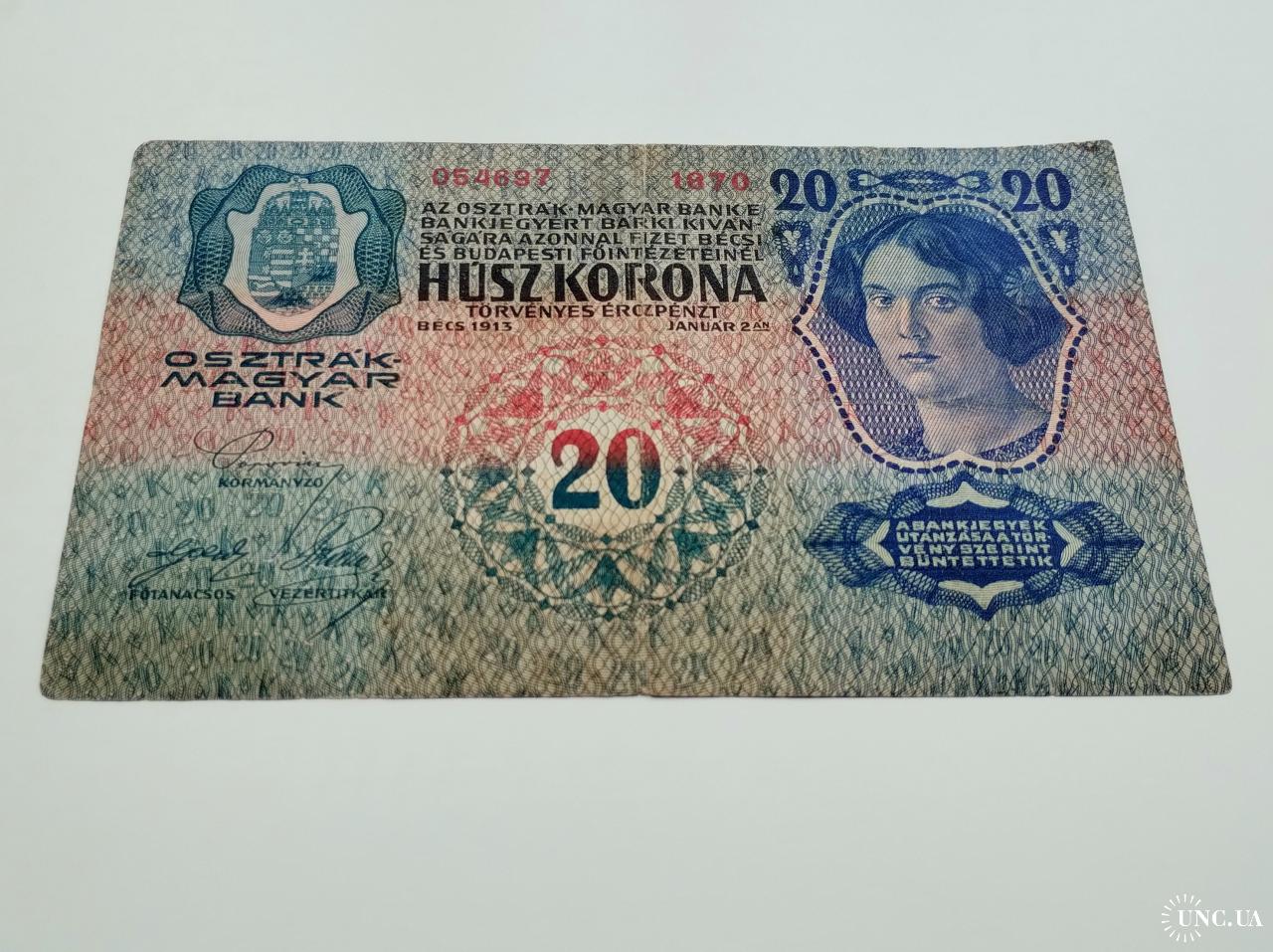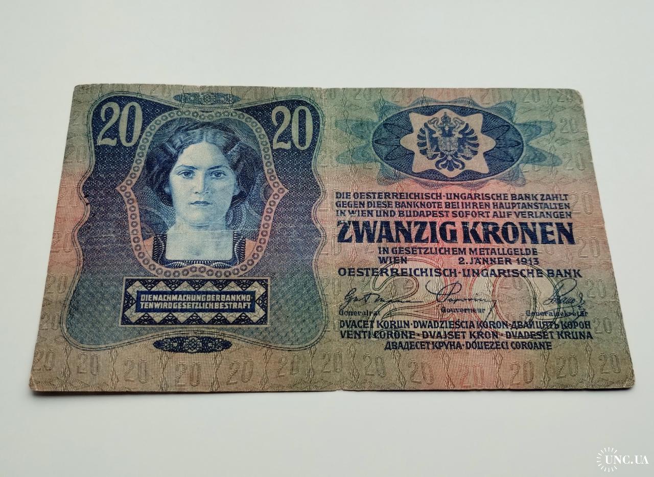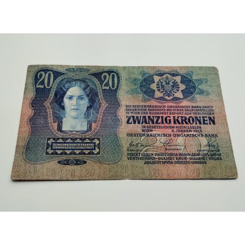 available20 крон 1913 року, Австро-Угорщина, стан банкноти по світлинах.