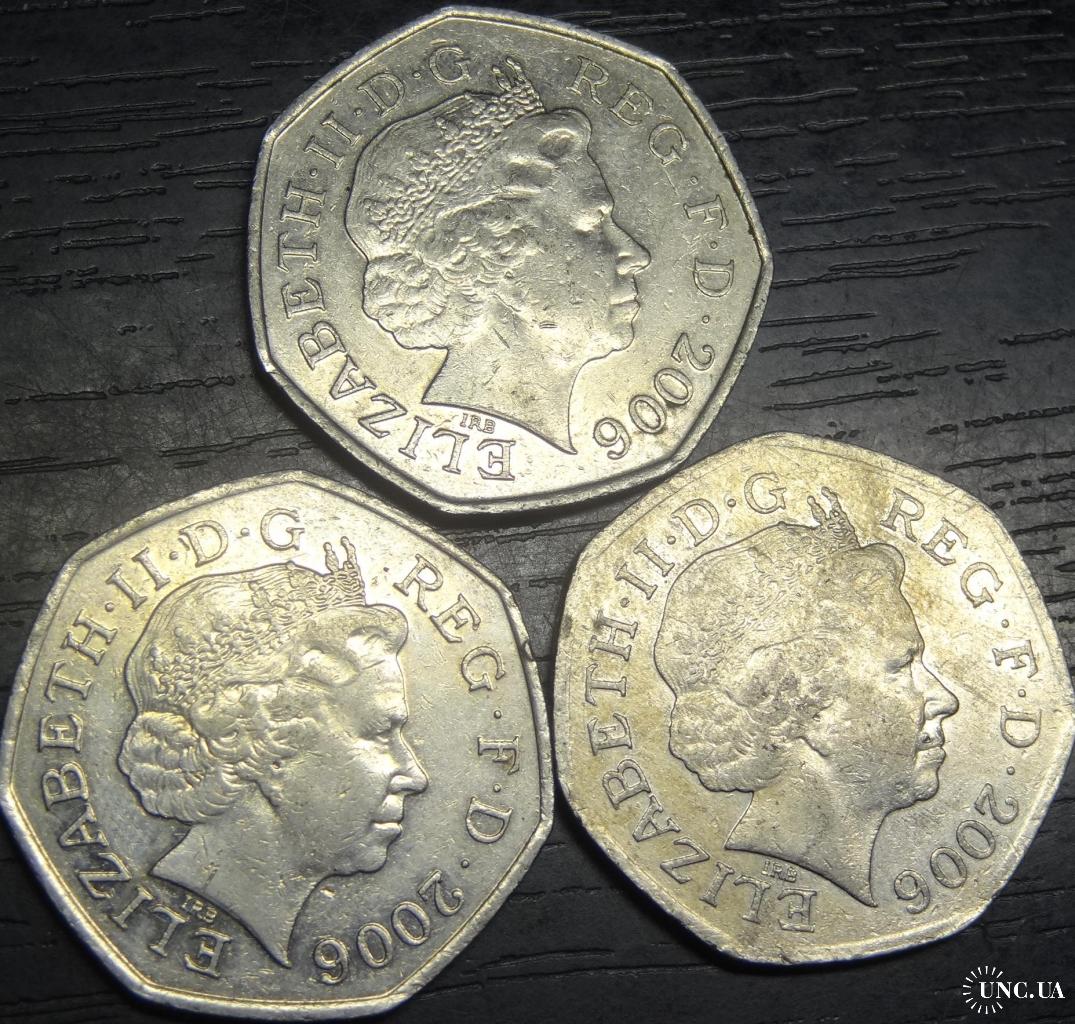 50 pence 2006 Great Britain (different kinds) / 50 пенсів 2006 Британія (три різновиди)