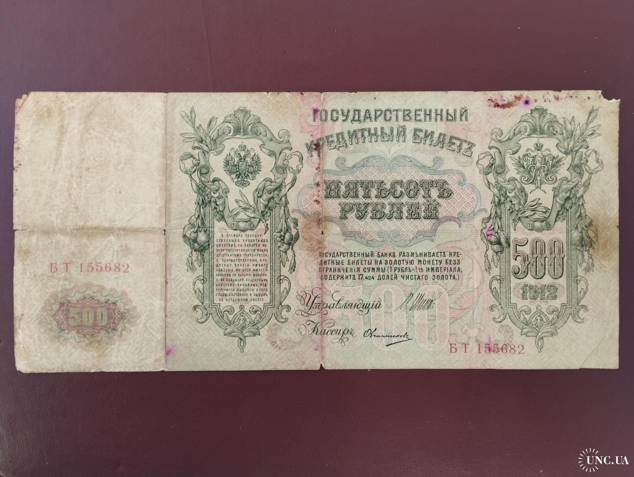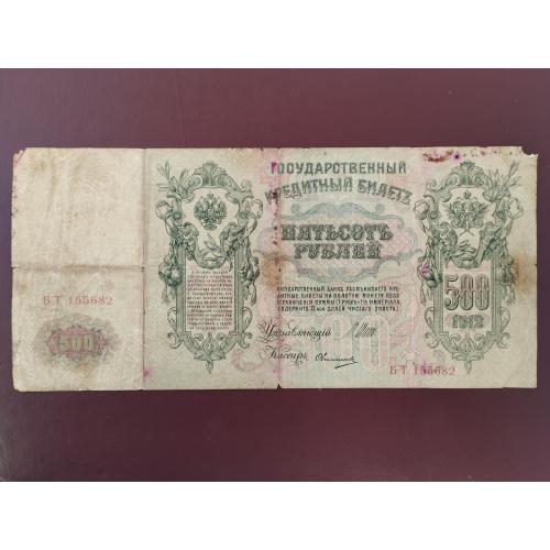 available500 рублей 1912 года, Шипов-Овчинников, Серия БТ (Правительство РСФСР 1917-1918 г.), состояние по фото