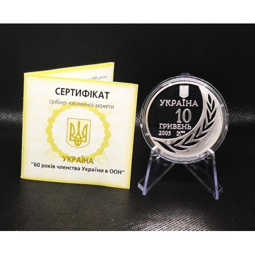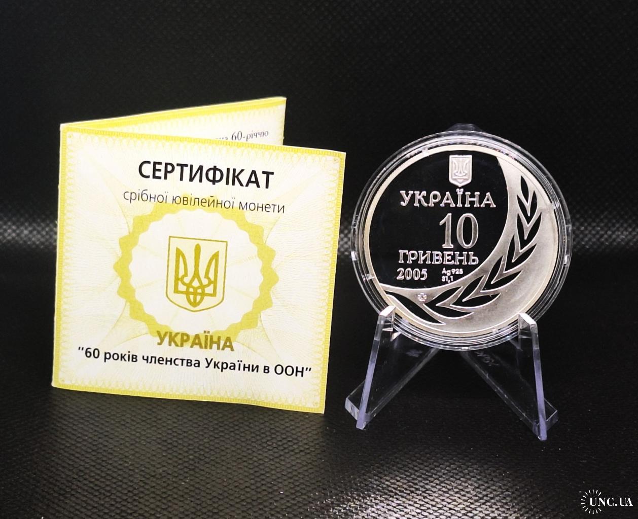 Срібна пам'ятна монета "60 років членства України в ООН"
