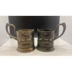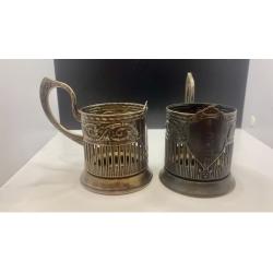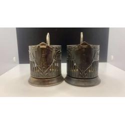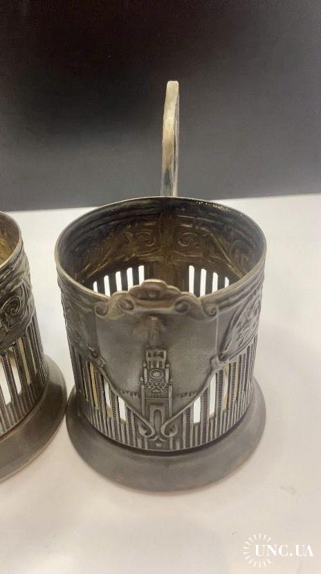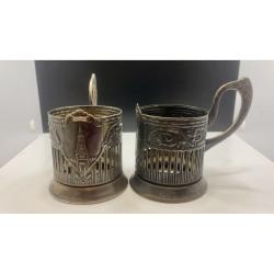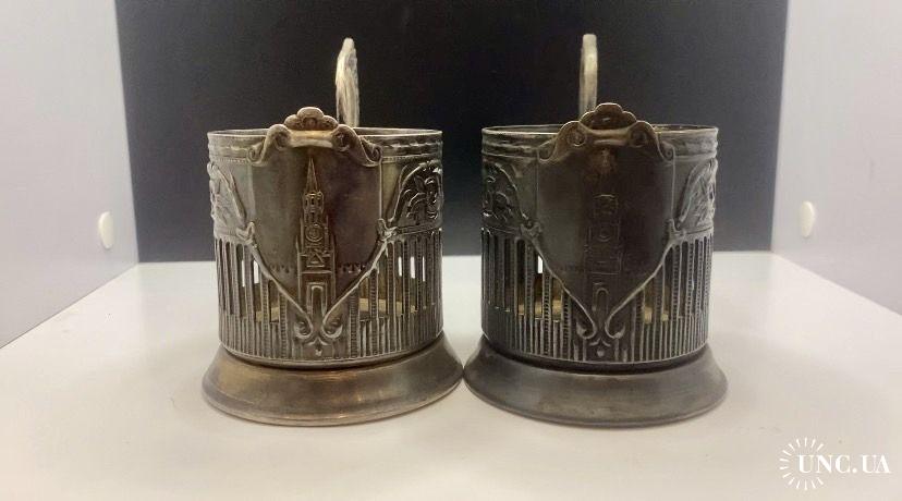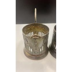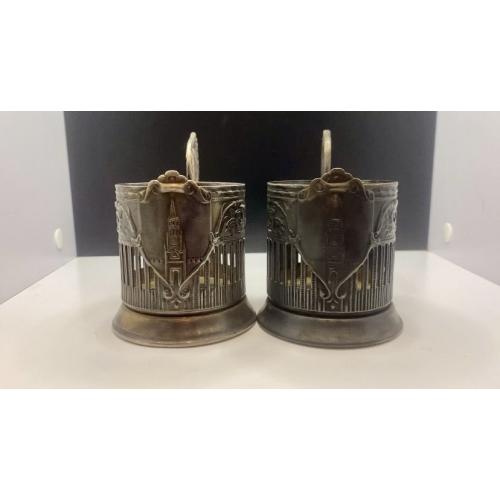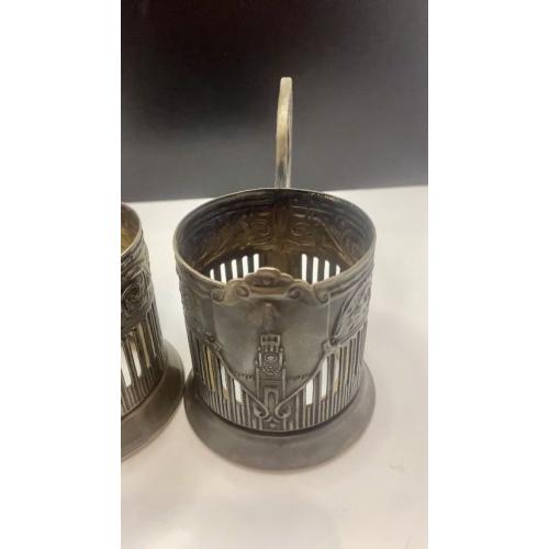 1981-20006к15 Подстаканники. 2 шт Мельхиор, посеребрение, Спасская башня, куранты.