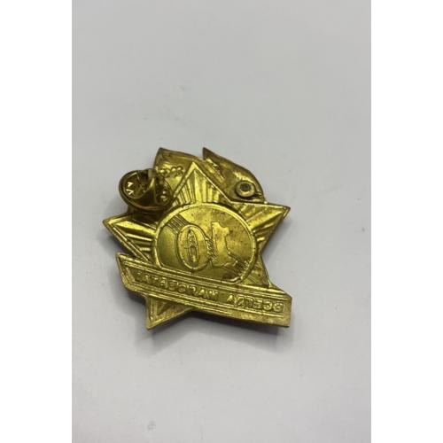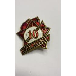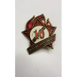 1981-20006к39 Знак 10 всегда маловата. Пионер, пионерия 1990 х. Легкий металл. Отломано одно крепление штанги