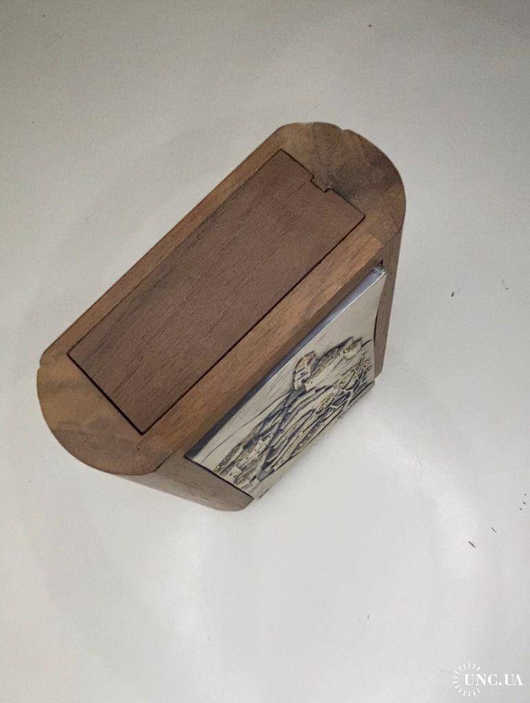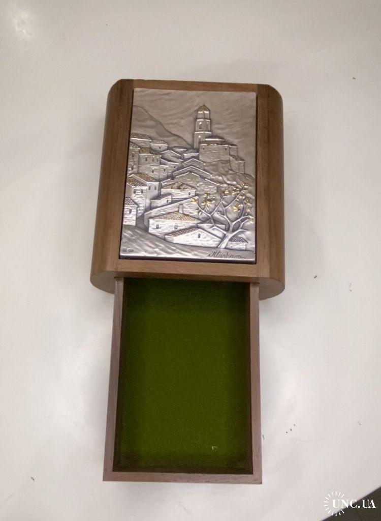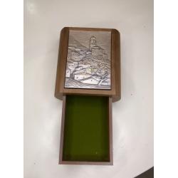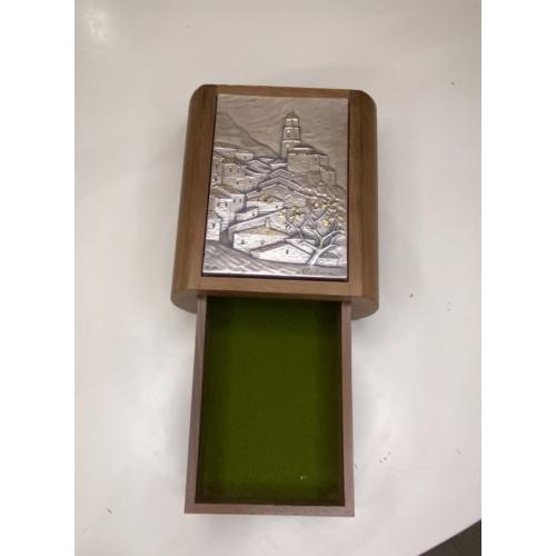 1981-20006lt38 Деревянная сигаретница с серебренной объемной накладкой.