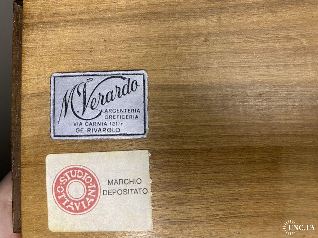 Ящичек со стопером, выдвигается в обе стороны. Внутри подложка из мягкой ткани. Накладка из серебра (проба на фото) объемная.