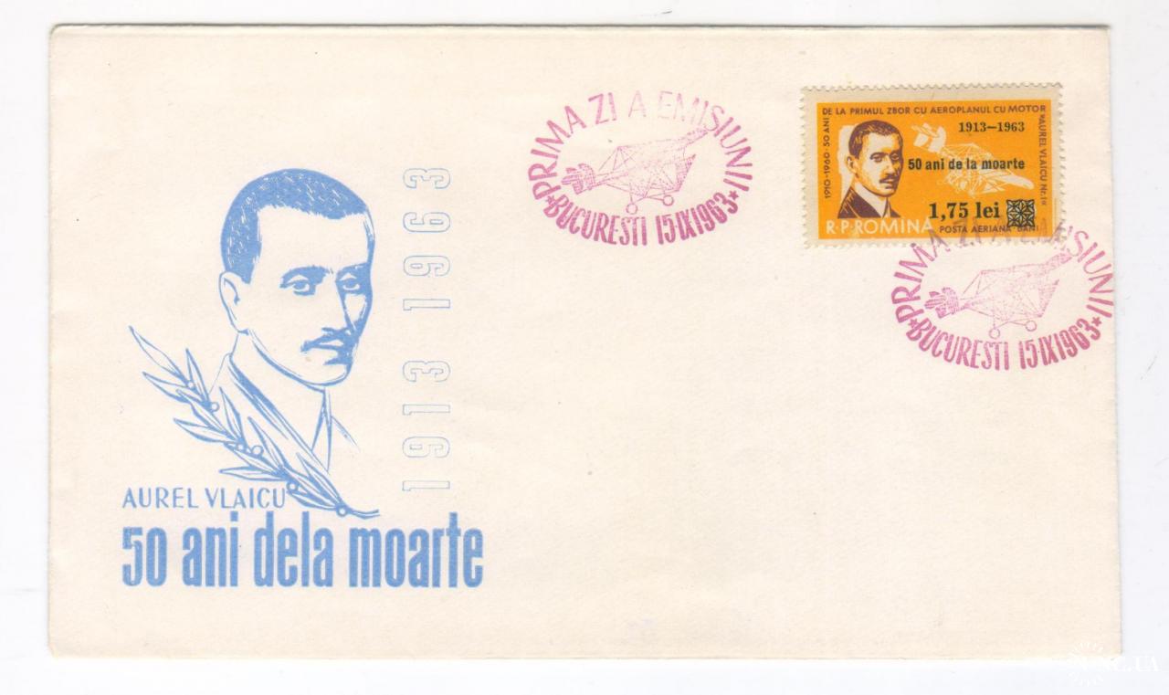 FDC Спецпогашення 50 р з дня смерті Ауреля Влайку 1963 Romania 50 ani de la moartea lui Aurel Vlaicu