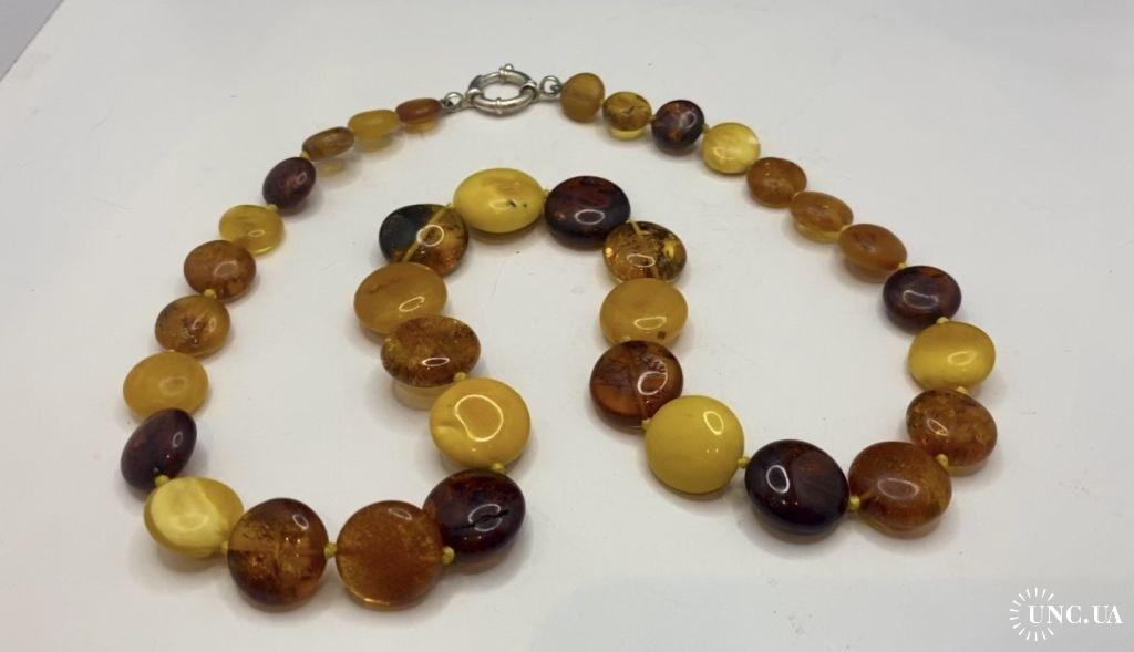 6lt104 Бусы из янтаря с застежкой из серебра 925 пр. Использован янтарь разного цвета и прозрачности