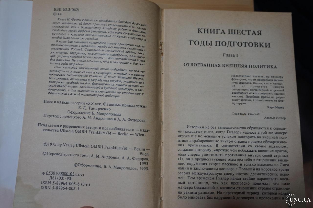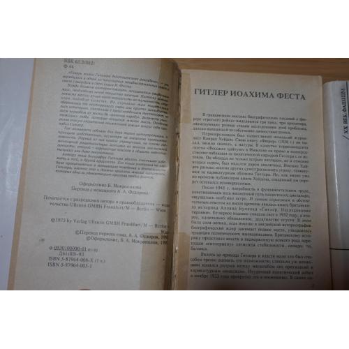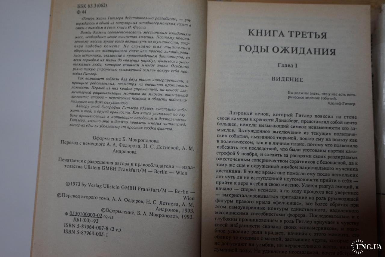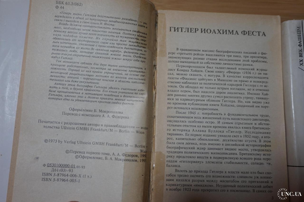 В связи с советской цензурой русскоязычные читатели смогли познакомиться с уже гремевшей на Западе книгой о Гитлере только через 20 лет после ее издания в Германии. Книга Иоахима Феста о вожде III Рейха действительно необычна: сначала автор показывает, где и в каких обстоятельствах будущий фюрер ознакомился с очередной идеей, как ее понял,как ее интерпретировал и что из этого вышло.То есть это единственное в своем роде исследование структуры мышления фюрера. И правдивый рассказ о том, как от идеализма этот человек скатился к нечеловеку…