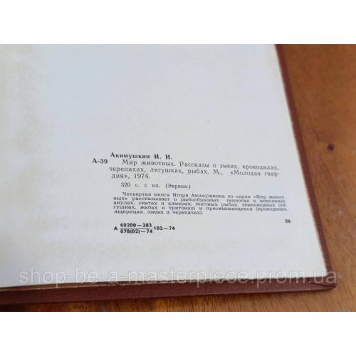 Акимушкин И. И. Мир животных. Рассказы о змеях, крокодилах, черепахах, лягушках, рыбах 1974.