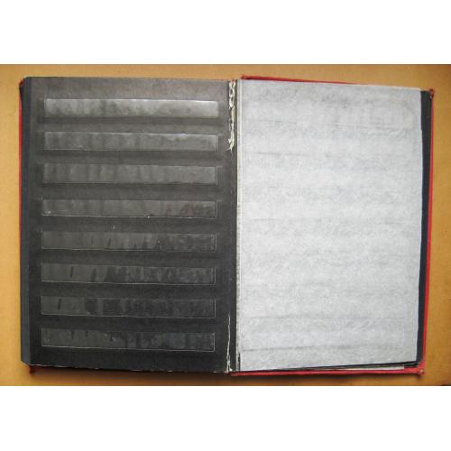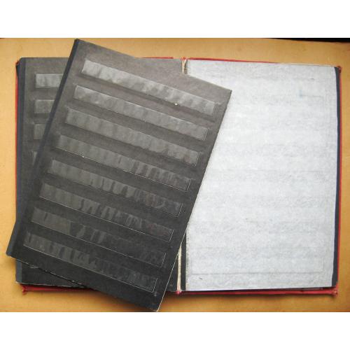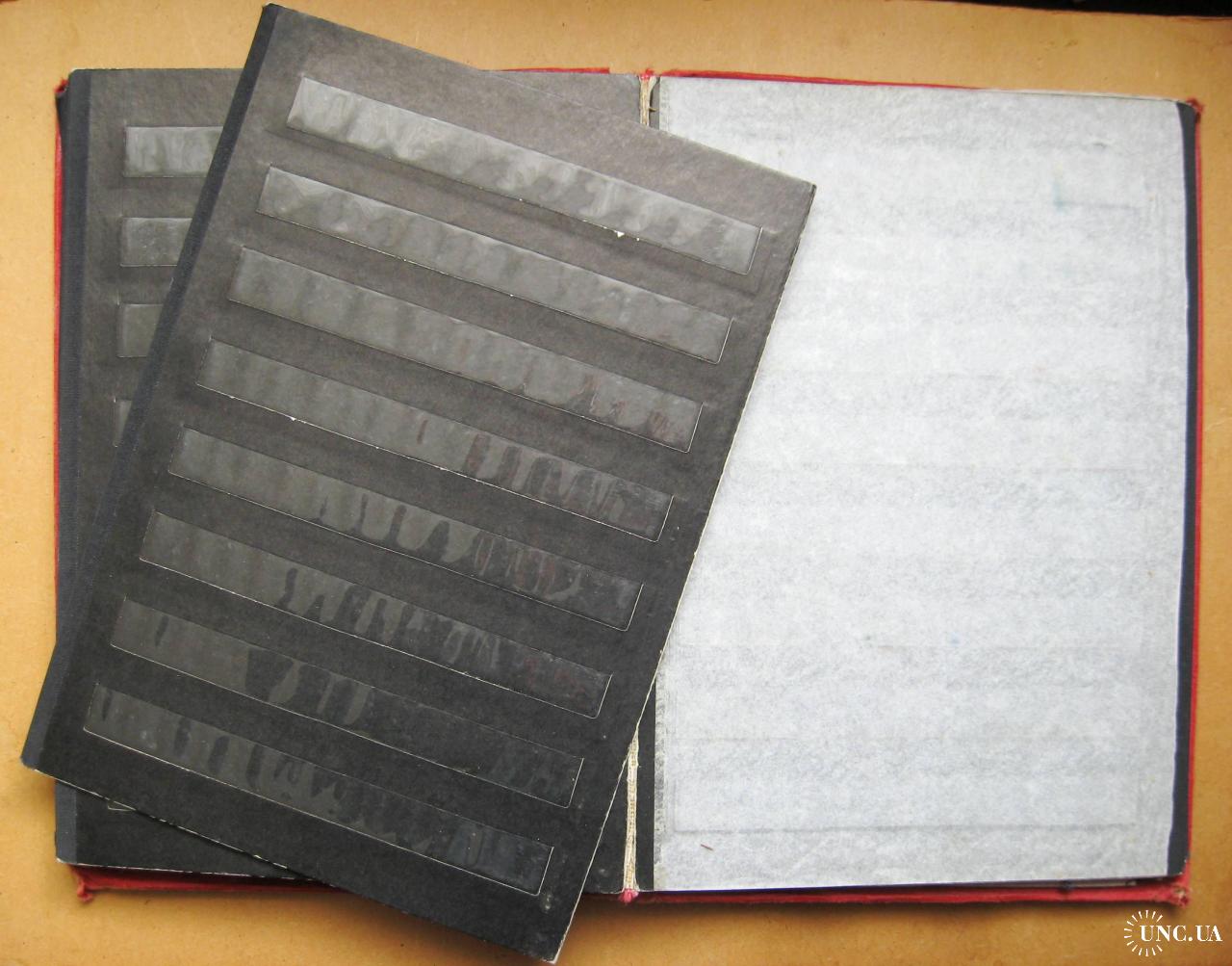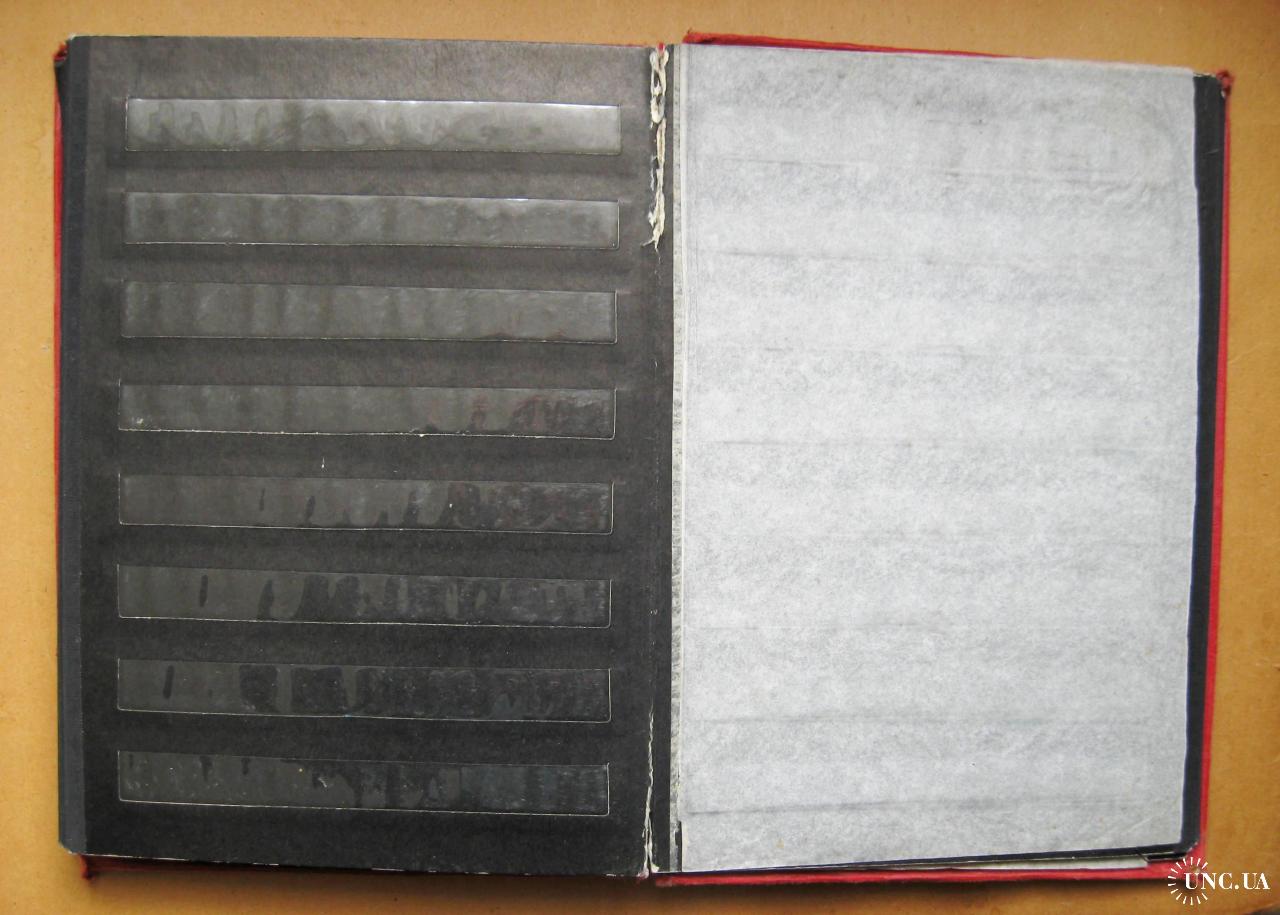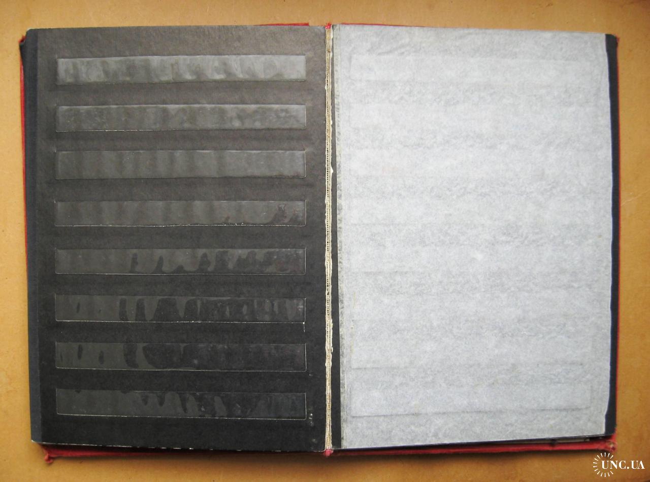 Альбом для марок. Всі полоски цілі. Один лист відірваний.