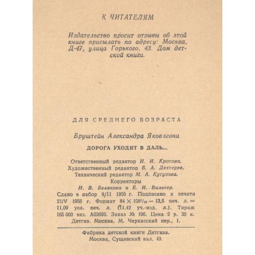 Александра Яковлевна Бруштейн начала писать автобиографическую трилогию "Дорога уходит в даль" в 1956 году. 72-летняя, глухая и почти слепая, Бруштейн писала книгу, героиней которой была она сама, но -девятилетняя.