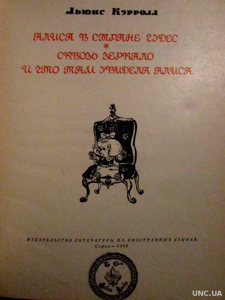 Льюис Кэрролл- литературный псевдонином оксфордского математика и философа Чарльза Лютвиджа Доджсона (1832 - 1898).Сказки этого замечательного английского списателя о приключениях Алисы в Стране чудес и в Зазеркалье можно назвать, пожалуй, самыми известными в мировой литературе. Их перевели почти на сто языков, по ним рисуют мультфильмы, сочиняют мюзиклы и оперы, создают компьютерные игры, снимают кино. Эти сказочные истории, придуманные полтора века назад, до сих пор остаются самыми оригинальными, необычными и мудрыми, в них так много веселых бессмыслиц, которые рождают серьезные мысли, что и дети, и взрослые вслед за героями то и дело повторяют: "Едят ли кошки мошек, едят ли мошки кошек?", "Все страньше и страньше". "Что толку в книжке, если в ней нет ни картинок, ни разговоров?", "Я получил классическое образование - мы целый день играли в классики"... В данное уже антикварное издание 1967 года из солнечной Болгарии вошли две всемирно известные сказочные повести Льюиса Кэрролла: "Приключения Алисы в Стране чудес" и "Алиса в Зазеркалье". Первая идавалась чаще, вторая – реже.