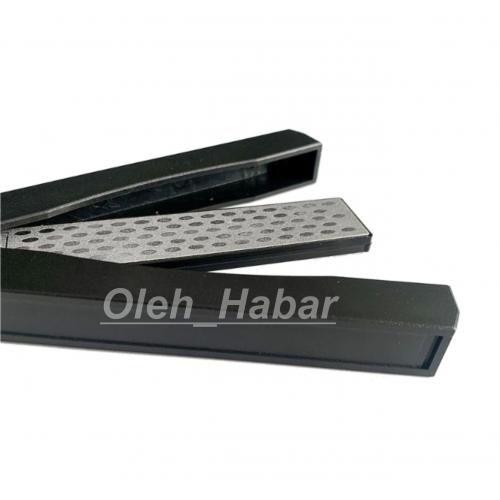 Гальванічно завдано алмазний шар. Двосторонній робочий елемент. Зручна складна конструкція. Можливість використання в польових умовах. Універсальність застосування.